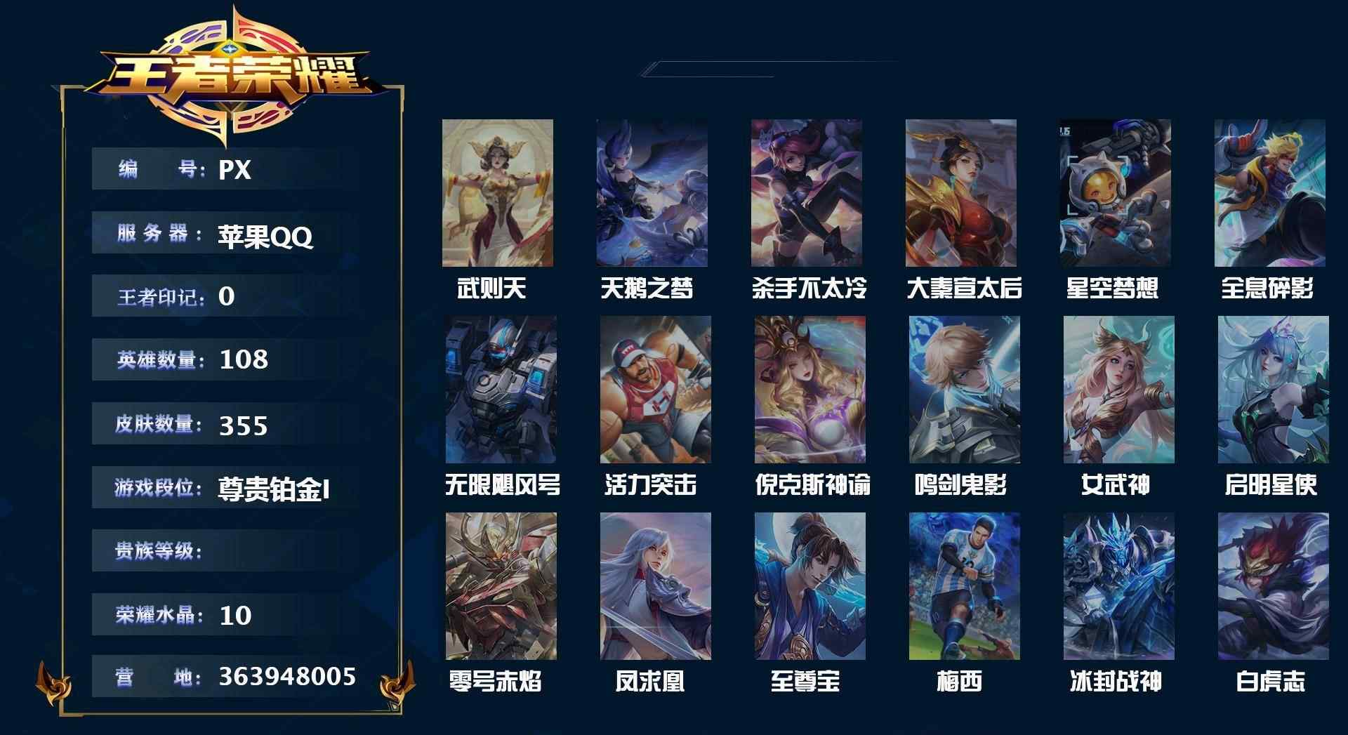 【可二次】【781391】【可二次】★辰实★可二次贵10皮肤355五级300星空梦想,大秦宣太后,杀手不太冷,全息碎影,武则天,无限飓风号,天鹅之梦,活力突击,倪克斯神谕,鸣剑·曳影,凤求凰,至尊宝