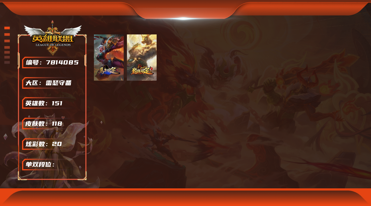 【9619406】[7814085]【gpz_944702】 t20170【雷瑟守备】 118皮肤 20炫彩 1臻彩 2神话/14限定/15传说/151英雄 账号等级:189 单双排段位:坚韧黑铁【重要皮肤】暗星科加斯 胜利巨口克格莫 替父从军花木兰 北辰之威内瑟斯 胜利女神奥莉安娜 胜利枪神格雷福斯 圣诞糖果棒厄运小姐 死亡誓约劫 SKTT1李青 防暴天使凯尔 冠军之隐劫