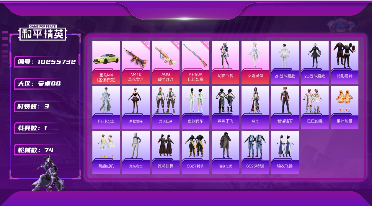 游戏区服:和平精英 / 安卓系统 / QQ账号