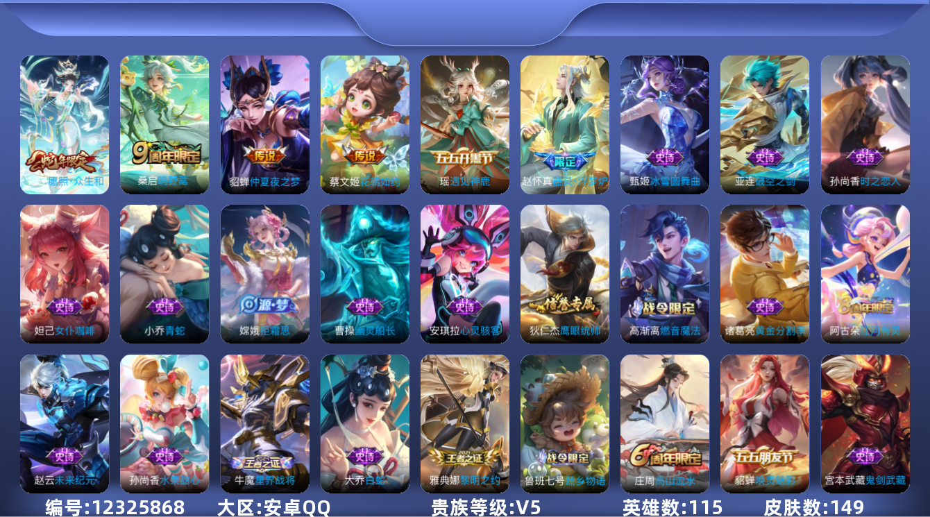 游戏区服:王者荣耀 / 安卓系统 / QQ账号