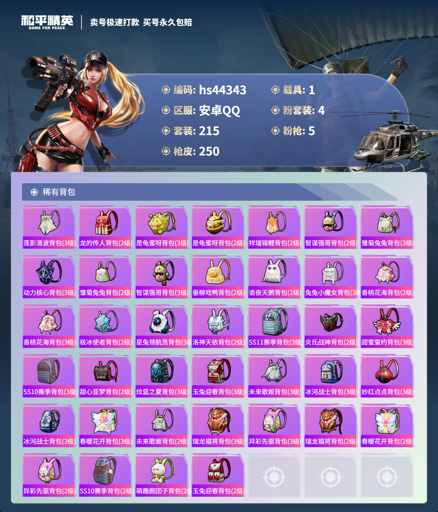 游戏区服:和平精英 / 安卓系统 / QQ账号