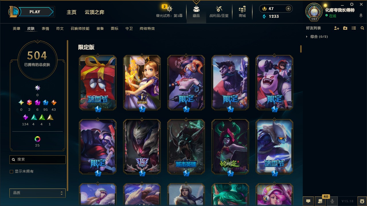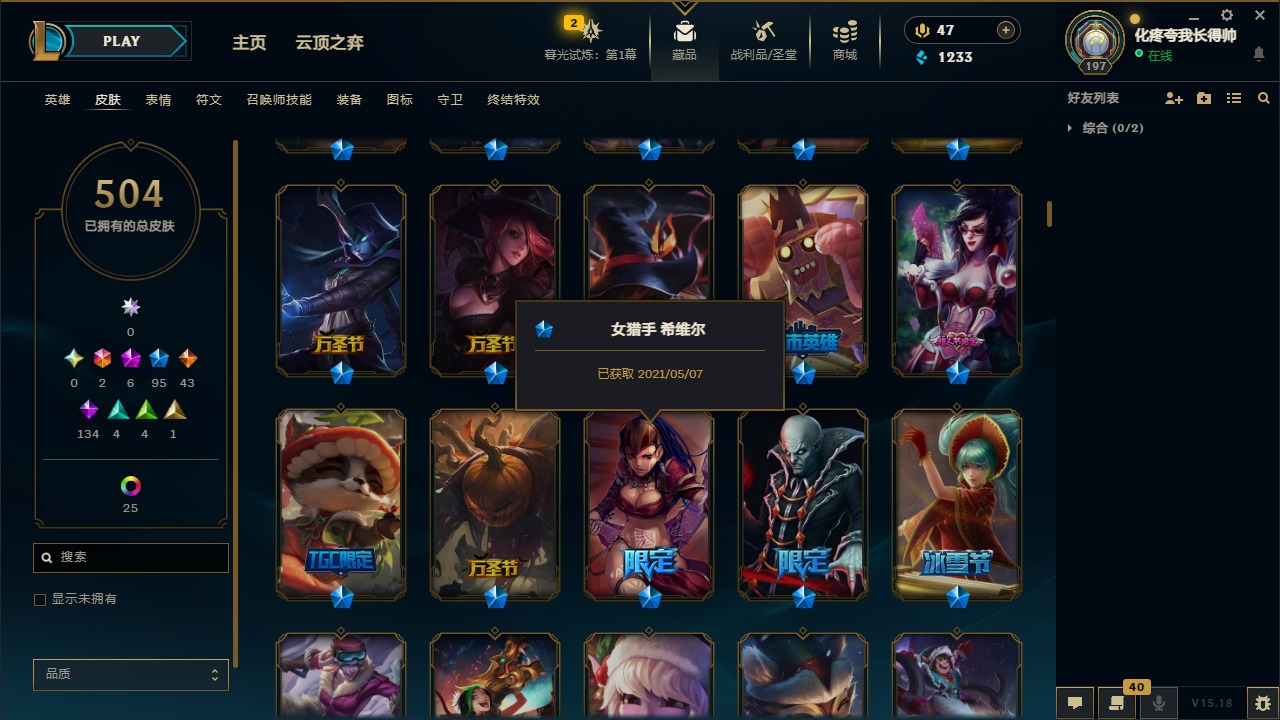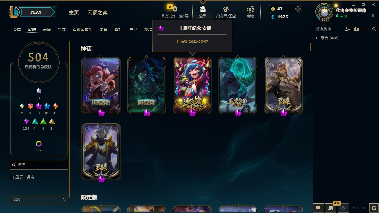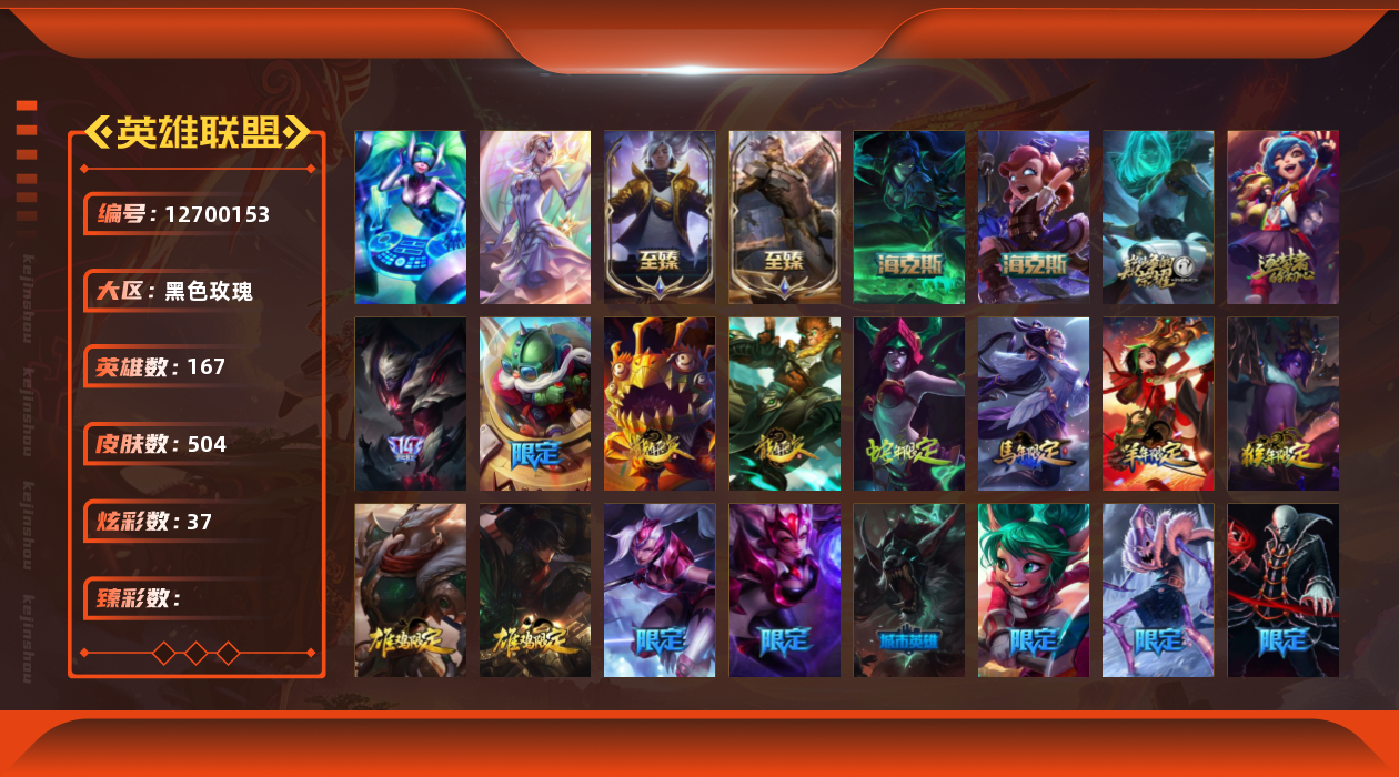 【10965789】2终极 6神话 95限定 43传说 134史诗 504皮肤 37炫彩 167英雄 可二次 可修改实名 【至臻】:至臻 真实伤害 亚索,至臻 源计划:逆流 塞拉斯【海克斯】:摄魂 薇恩,海克斯 安妮【限定】:冰原狙击 凯特琳,钢铁军团 拉克丝,舞会公主 安妮,哥特萝莉 安妮【情人节限定】:觅心猎手 薇恩,甜心宝贝 安妮,甜心宝贝 娑娜【赛季限定皮】:胜利女神 莫甘娜,胜利女神