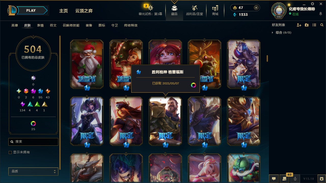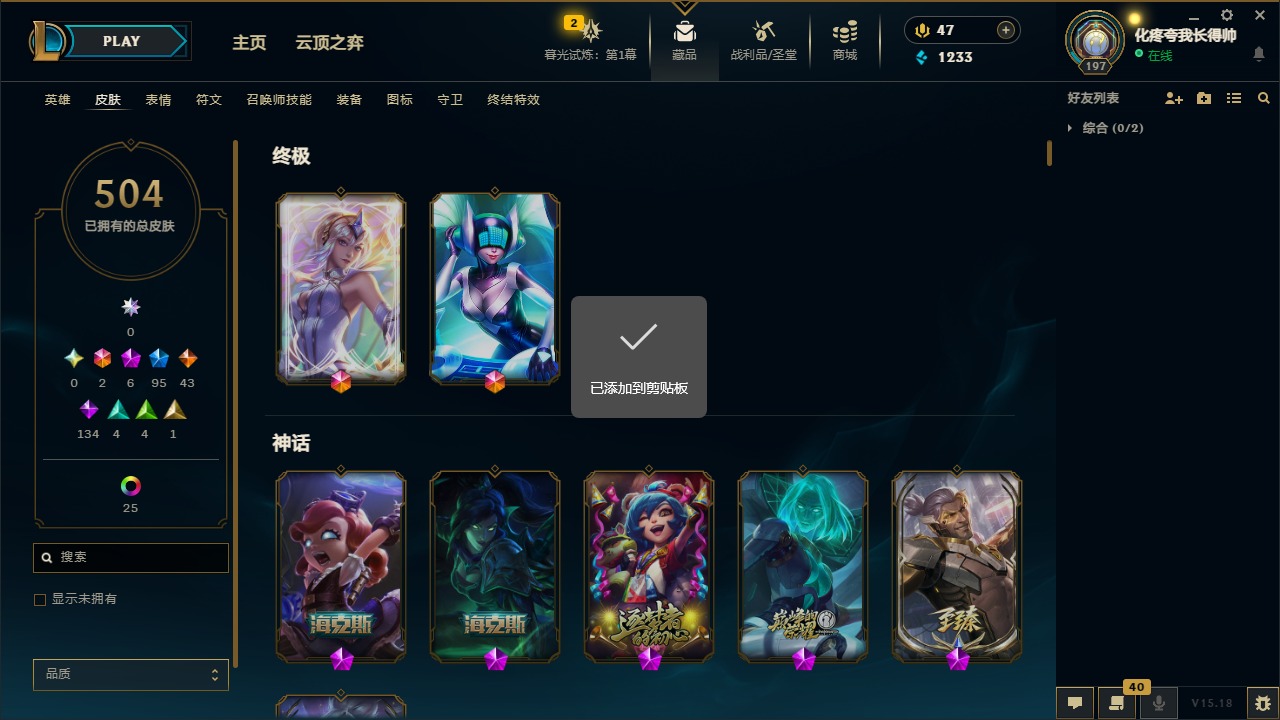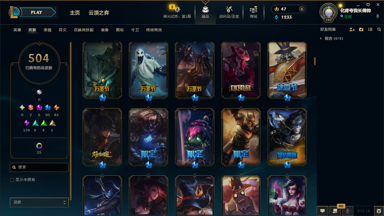 【10965789】2终极 6神话 95限定 43传说 134史诗 504皮肤 37炫彩 167英雄 可二次 可修改实名 【至臻】:至臻 真实伤害 亚索,至臻 源计划:逆流 塞拉斯【海克斯】:摄魂 薇恩,海克斯 安妮【限定】:冰原狙击 凯特琳,钢铁军团 拉克丝,舞会公主 安妮,哥特萝莉 安妮【情人节限定】:觅心猎手 薇恩,甜心宝贝 安妮,甜心宝贝 娑娜【赛季限定皮】:胜利女神 莫甘娜,胜利女神