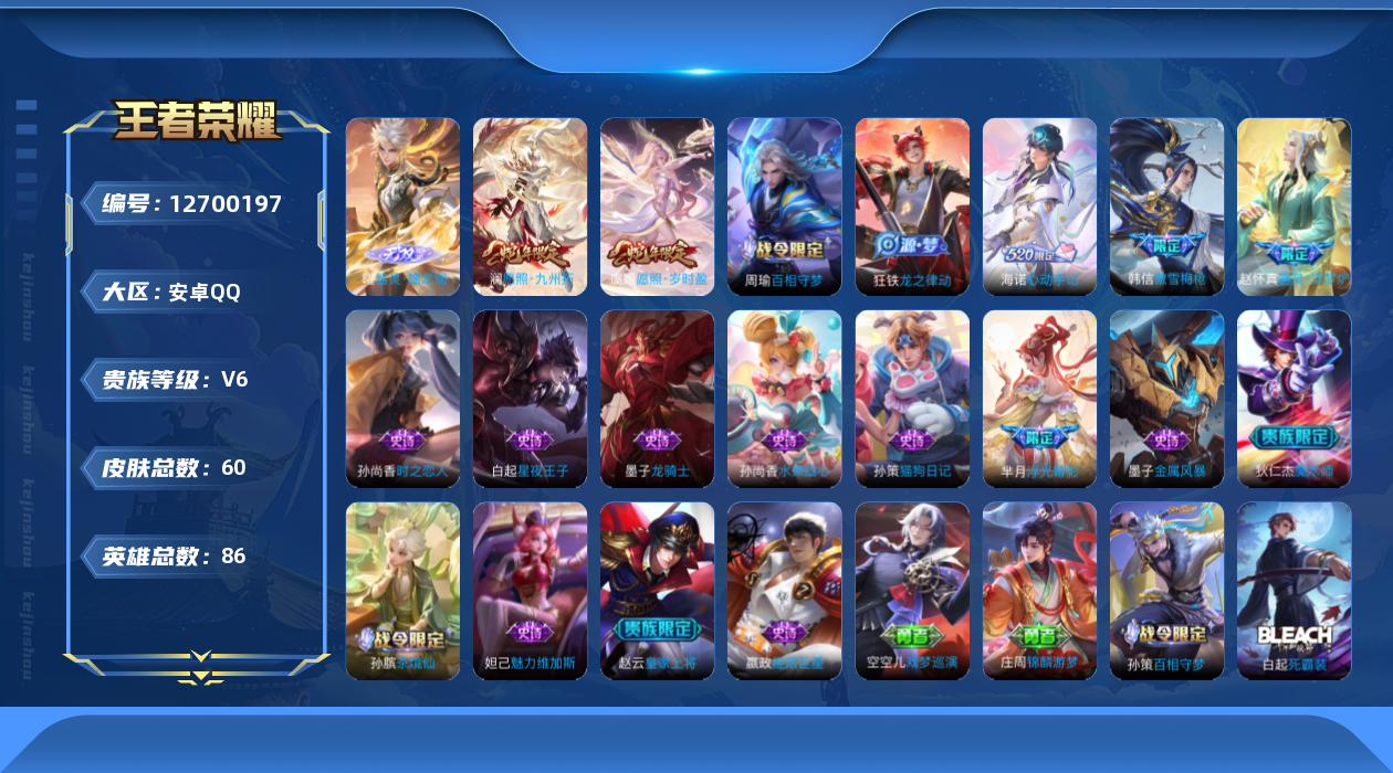 游戏区服:王者荣耀 / 安卓系统 / QQ账号