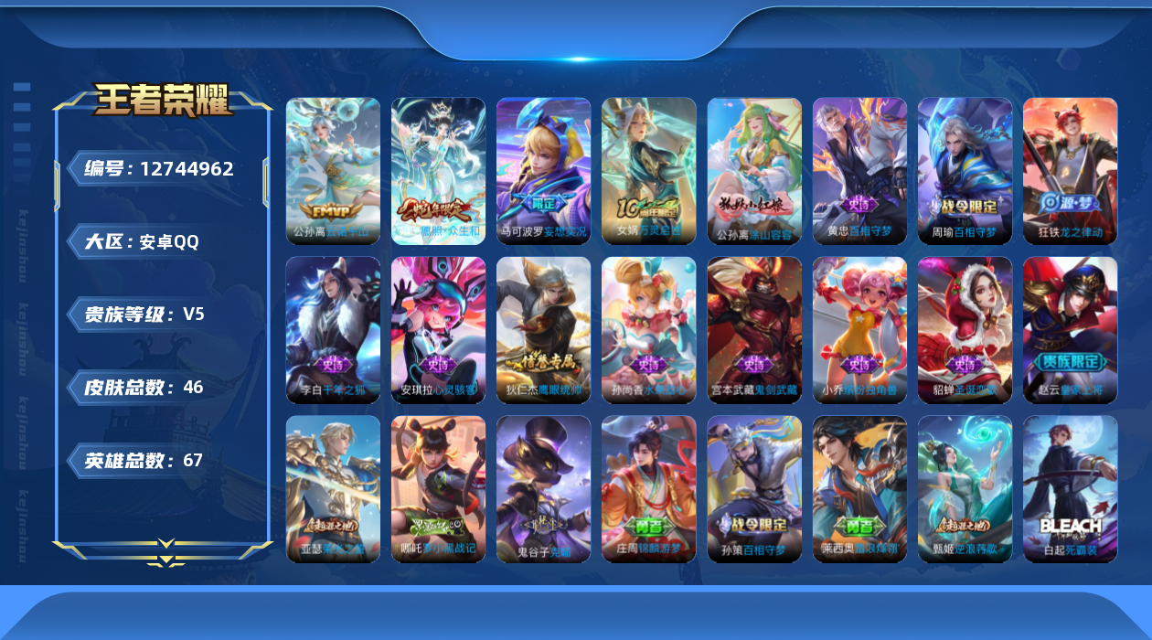 游戏区服:王者荣耀 / 安卓系统 / QQ账号