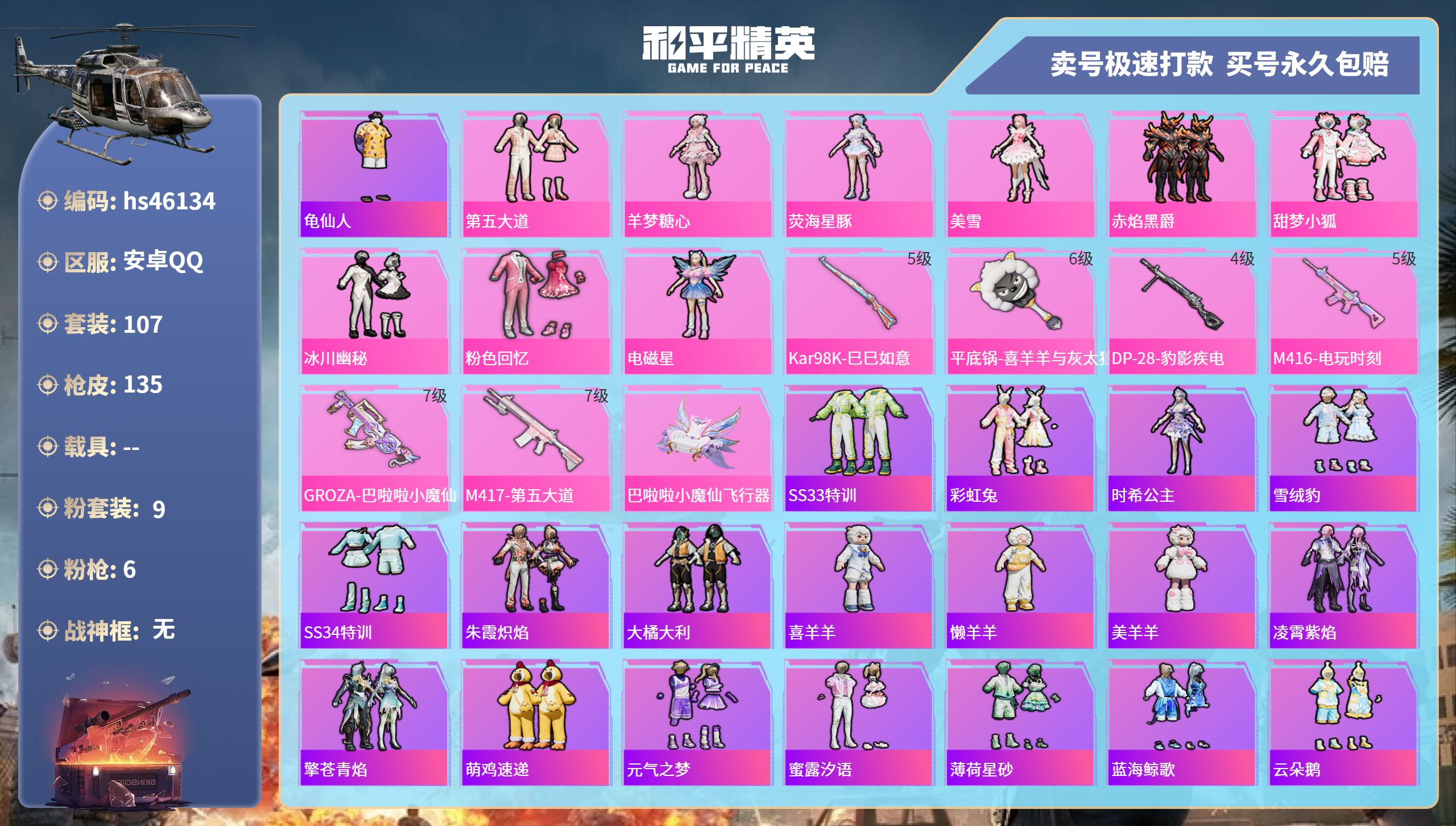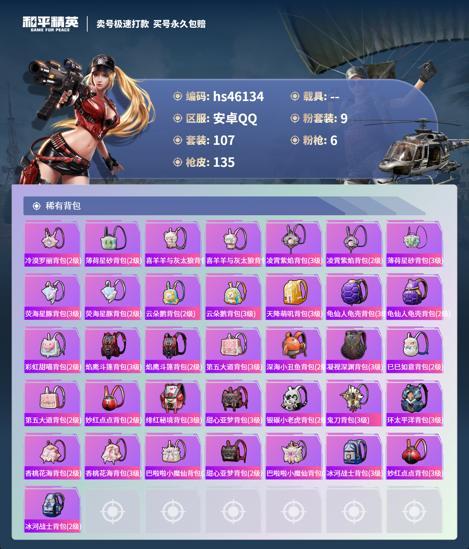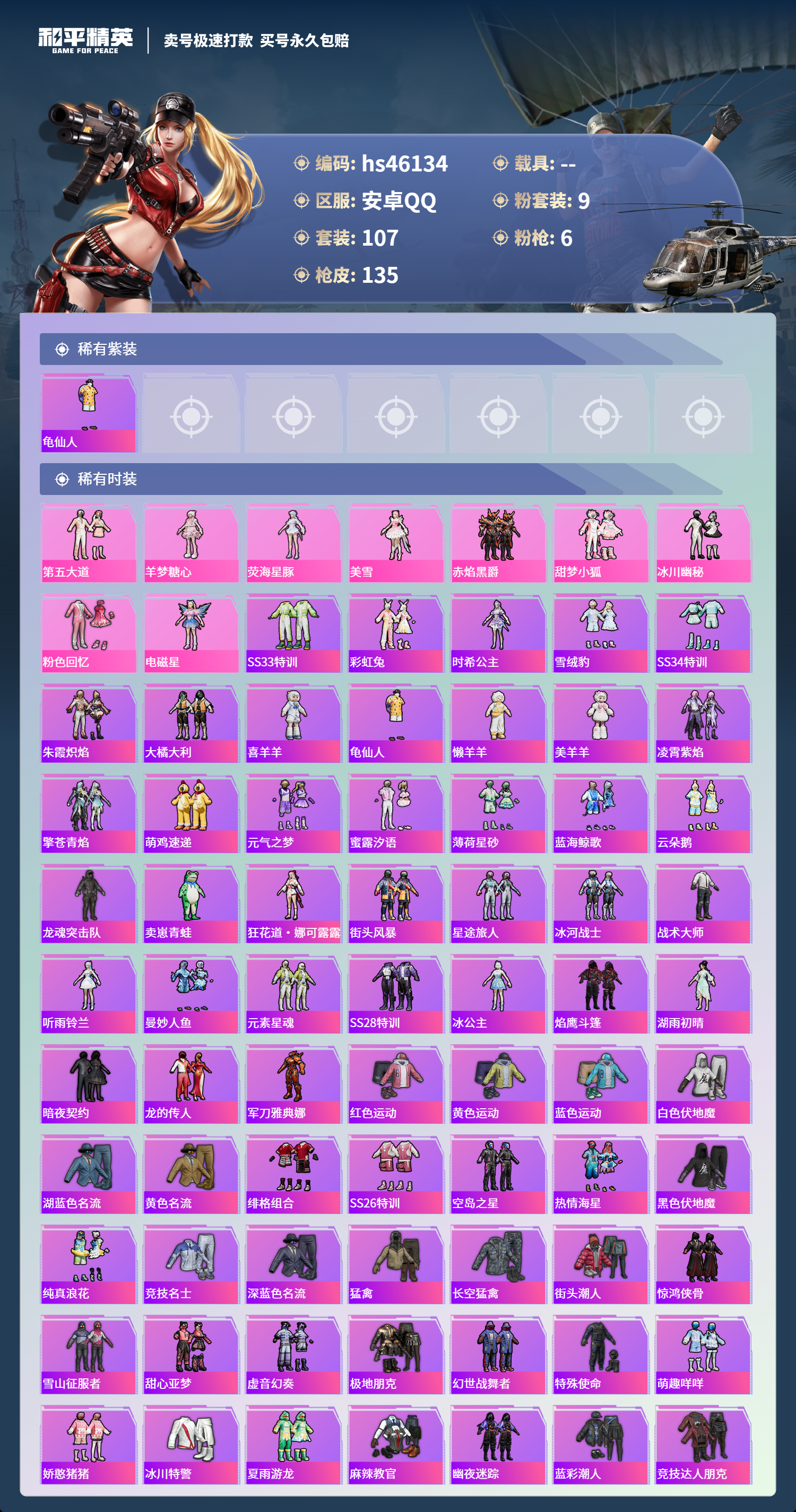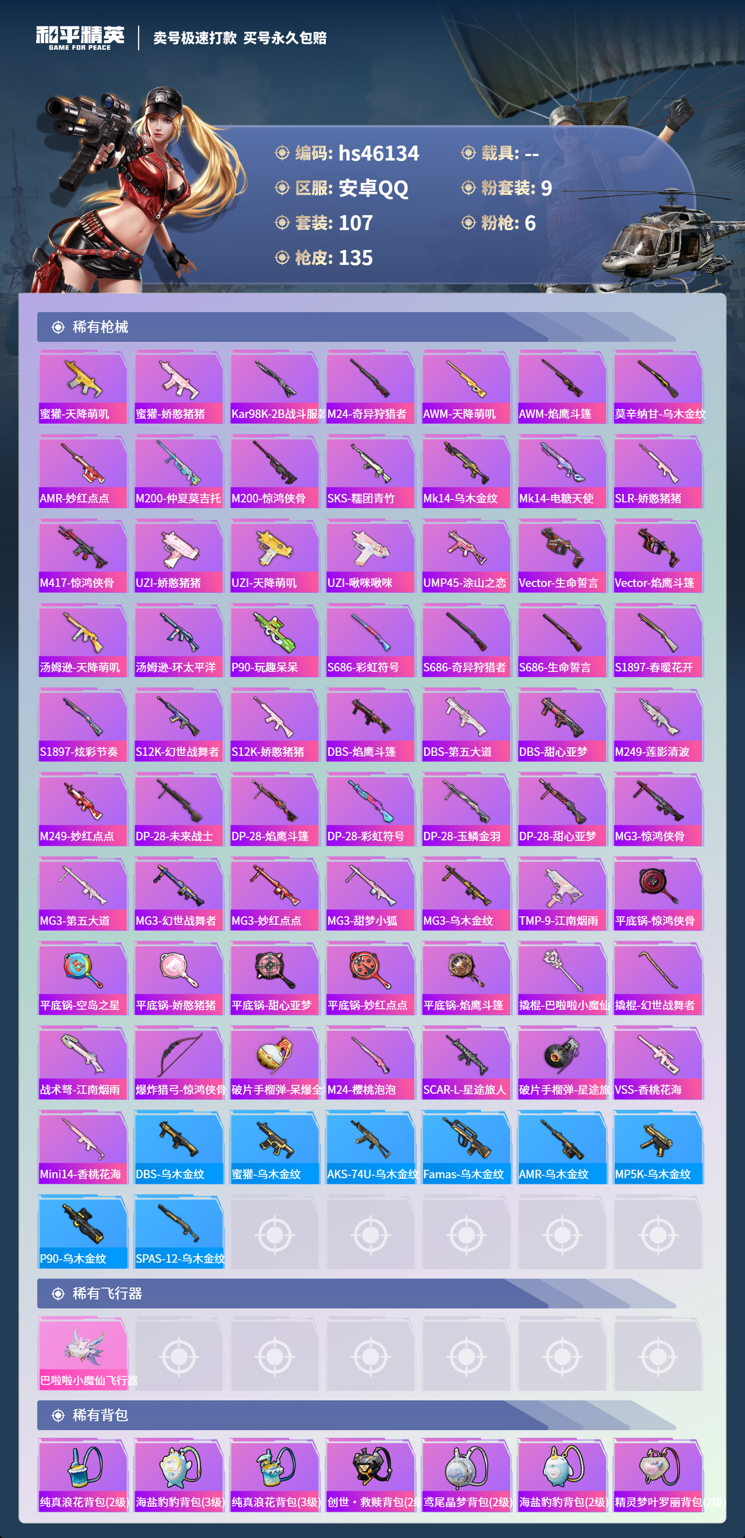 游戏区服:和平精英 / 安卓系统 / QQ账号