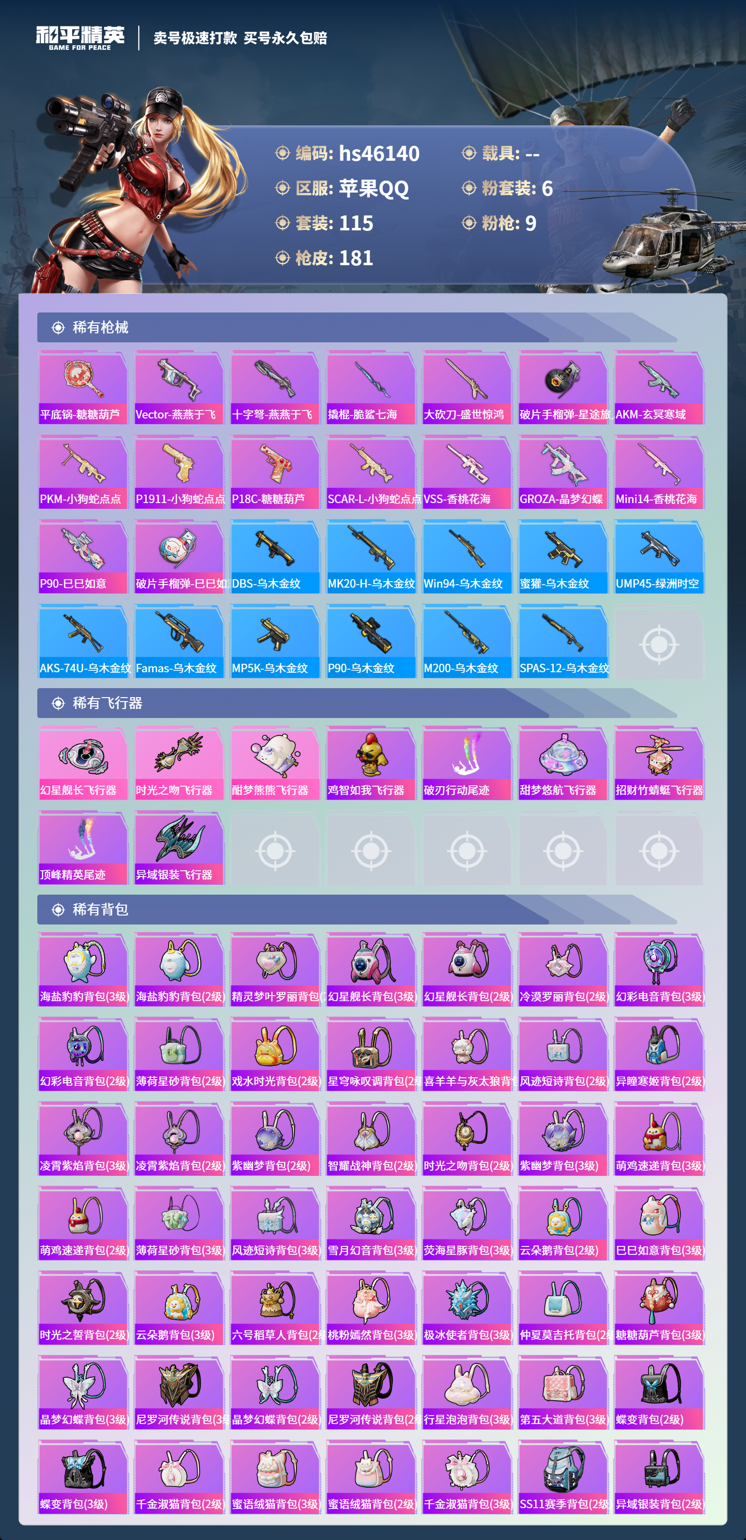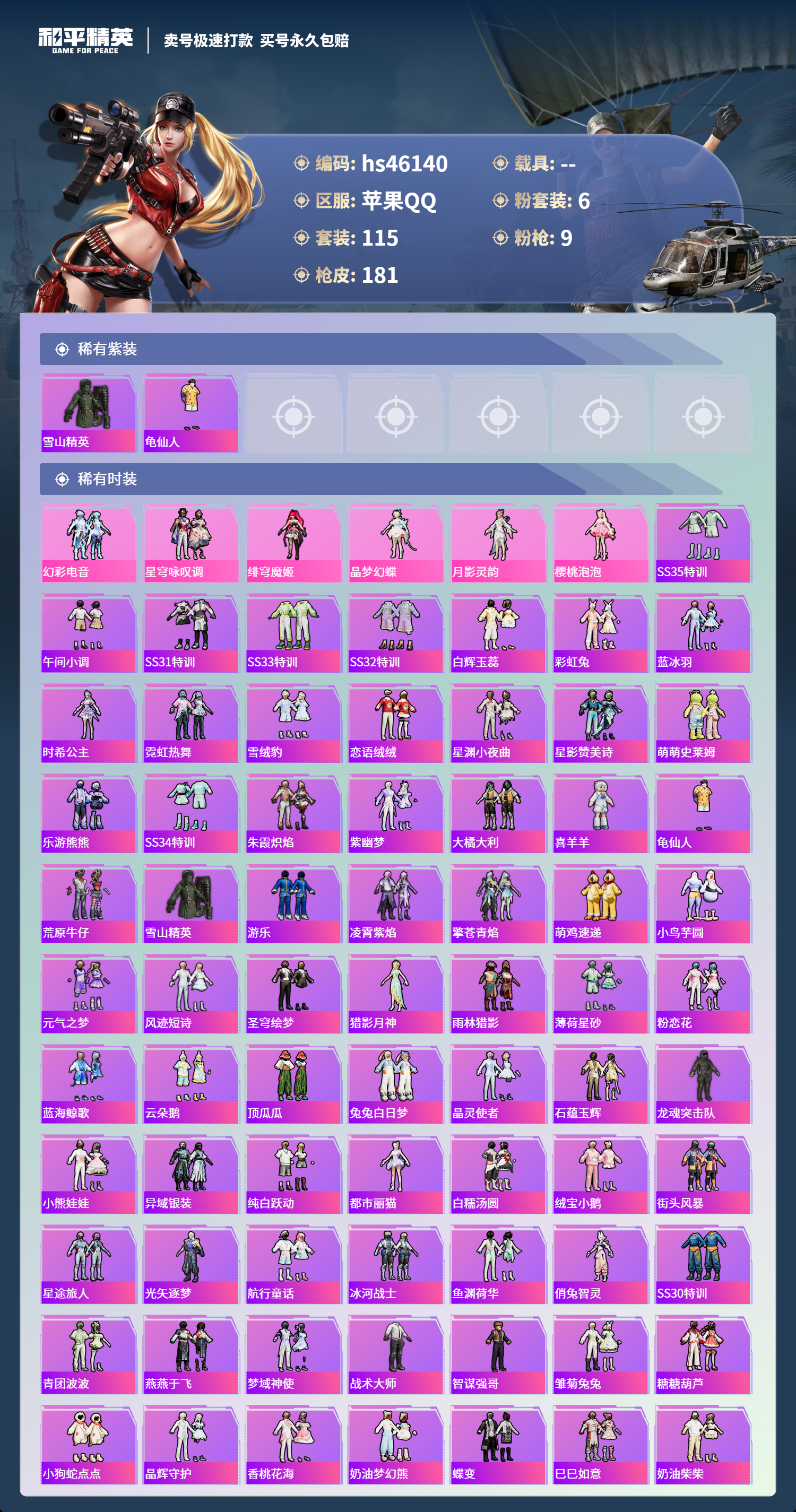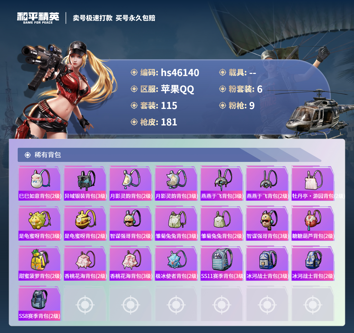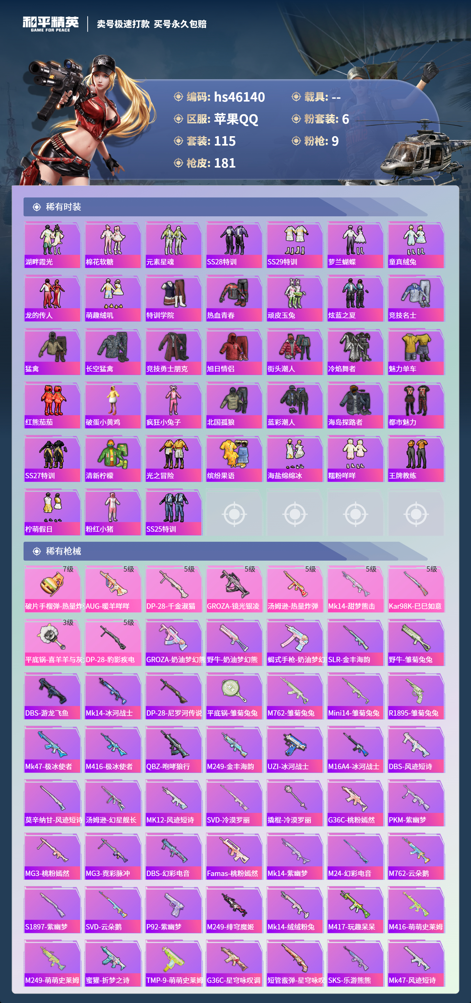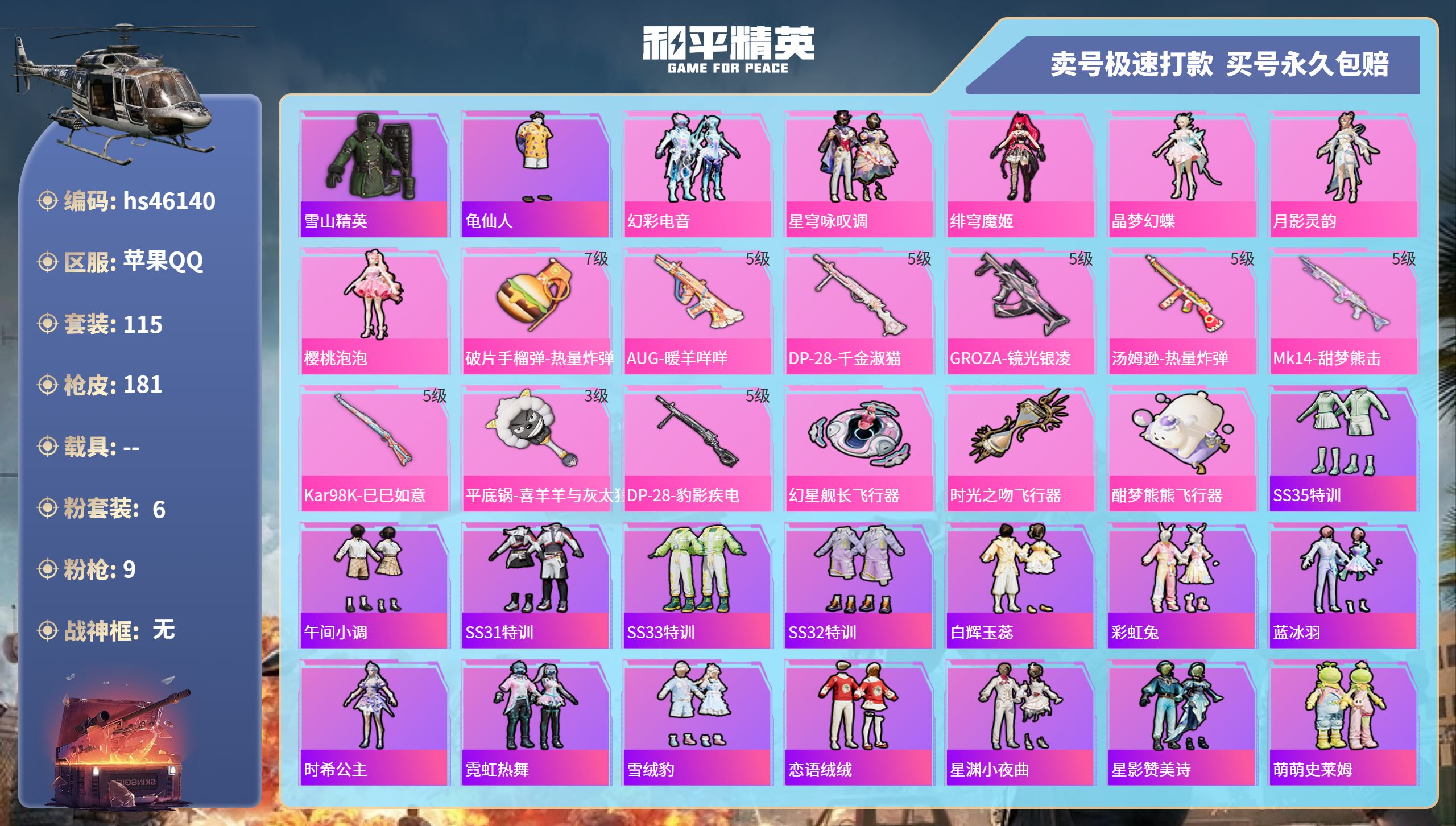 游戏区服:和平精英 / 苹果系统 / QQ帐号