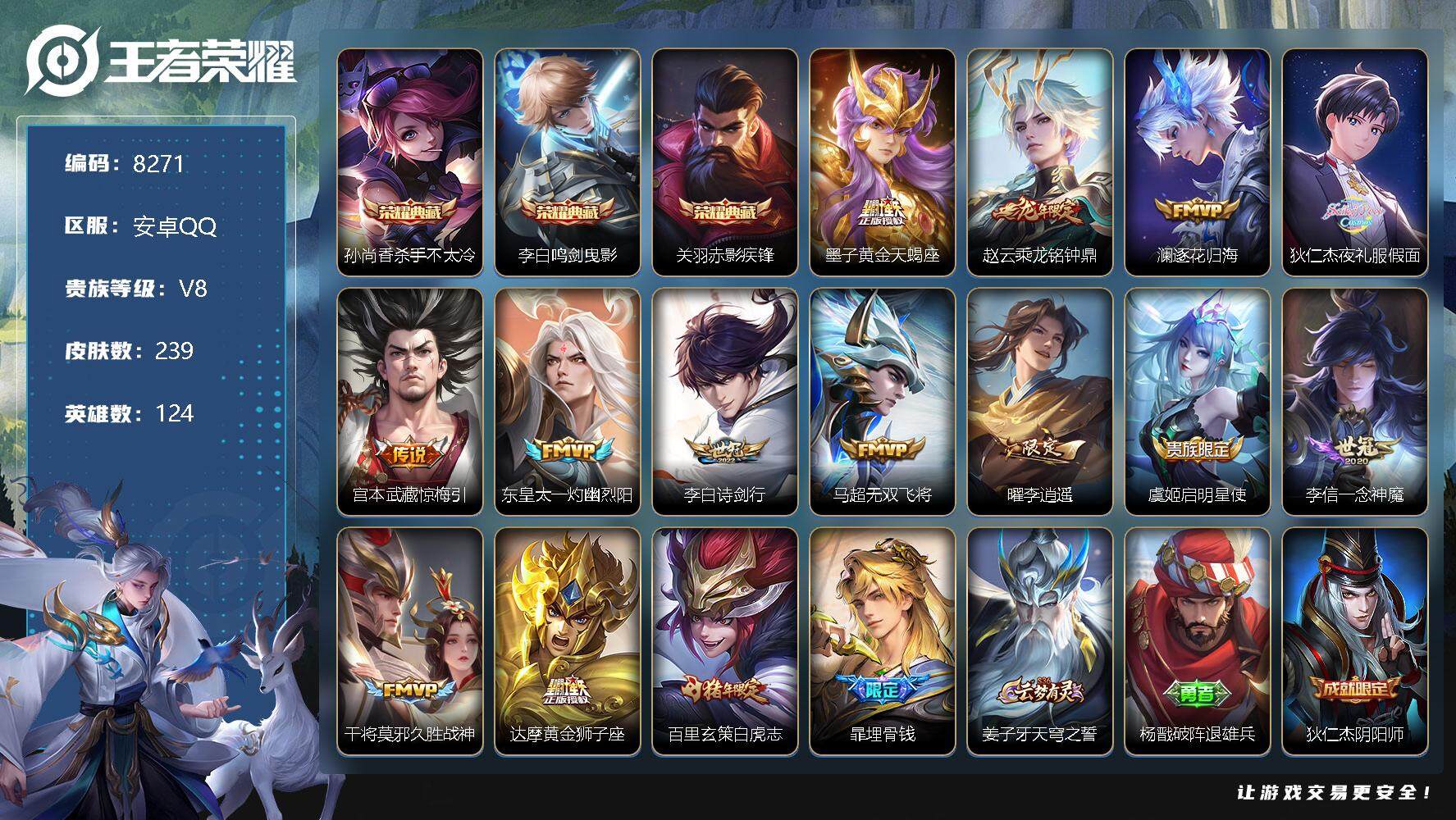 游戏区服:王者荣耀 / 安卓系统 / QQ账号