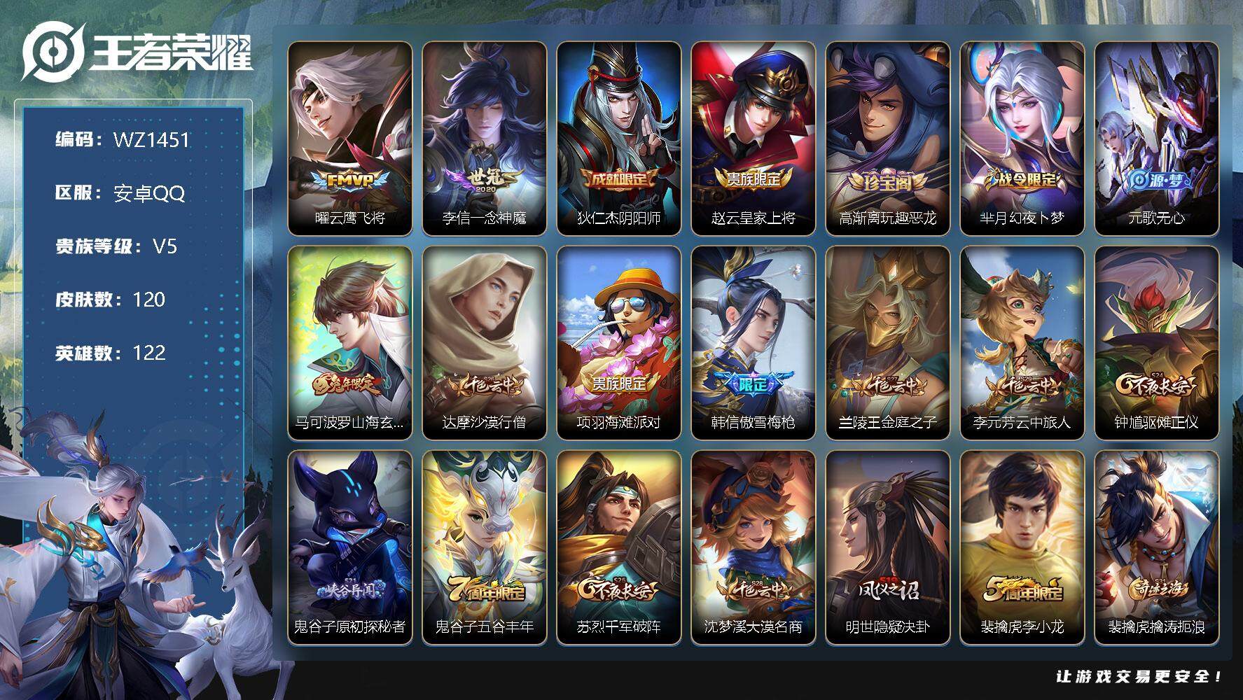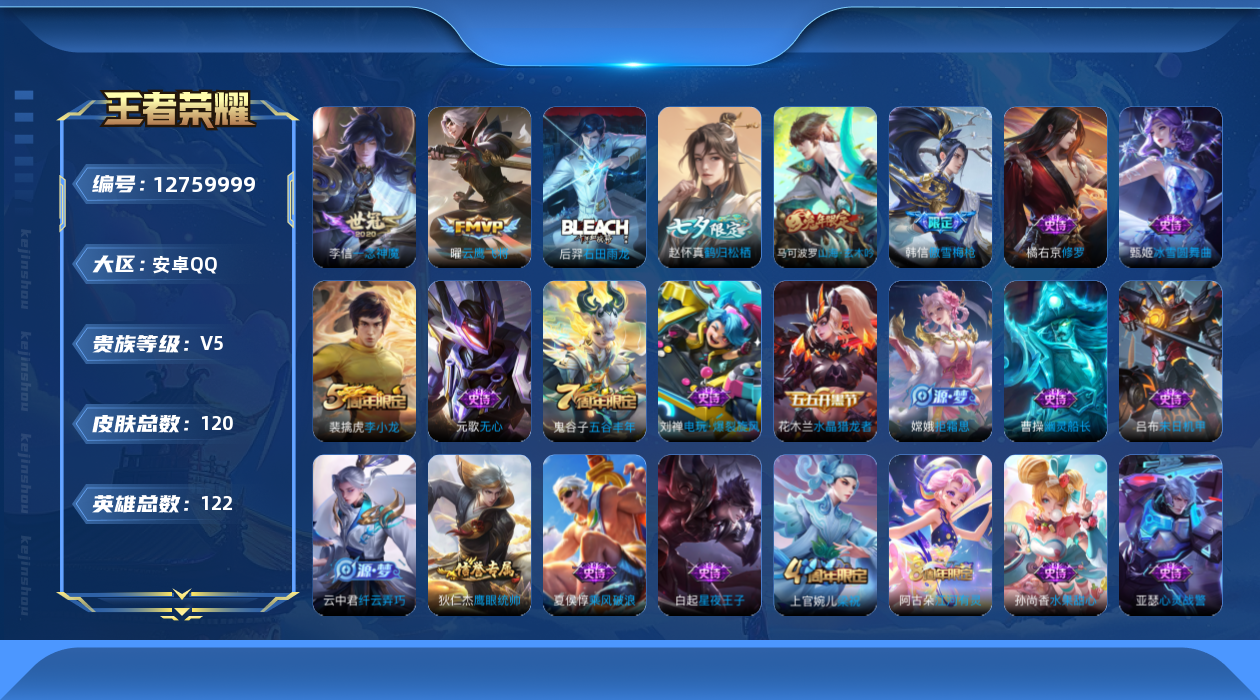 游戏区服:王者荣耀 / 安卓系统 / QQ账号