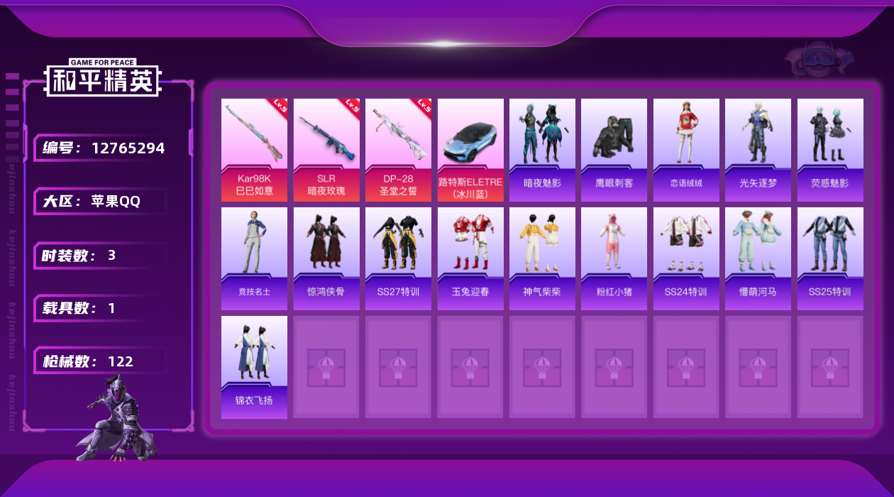 游戏区服:和平精英 / 苹果系统 / QQ帐号