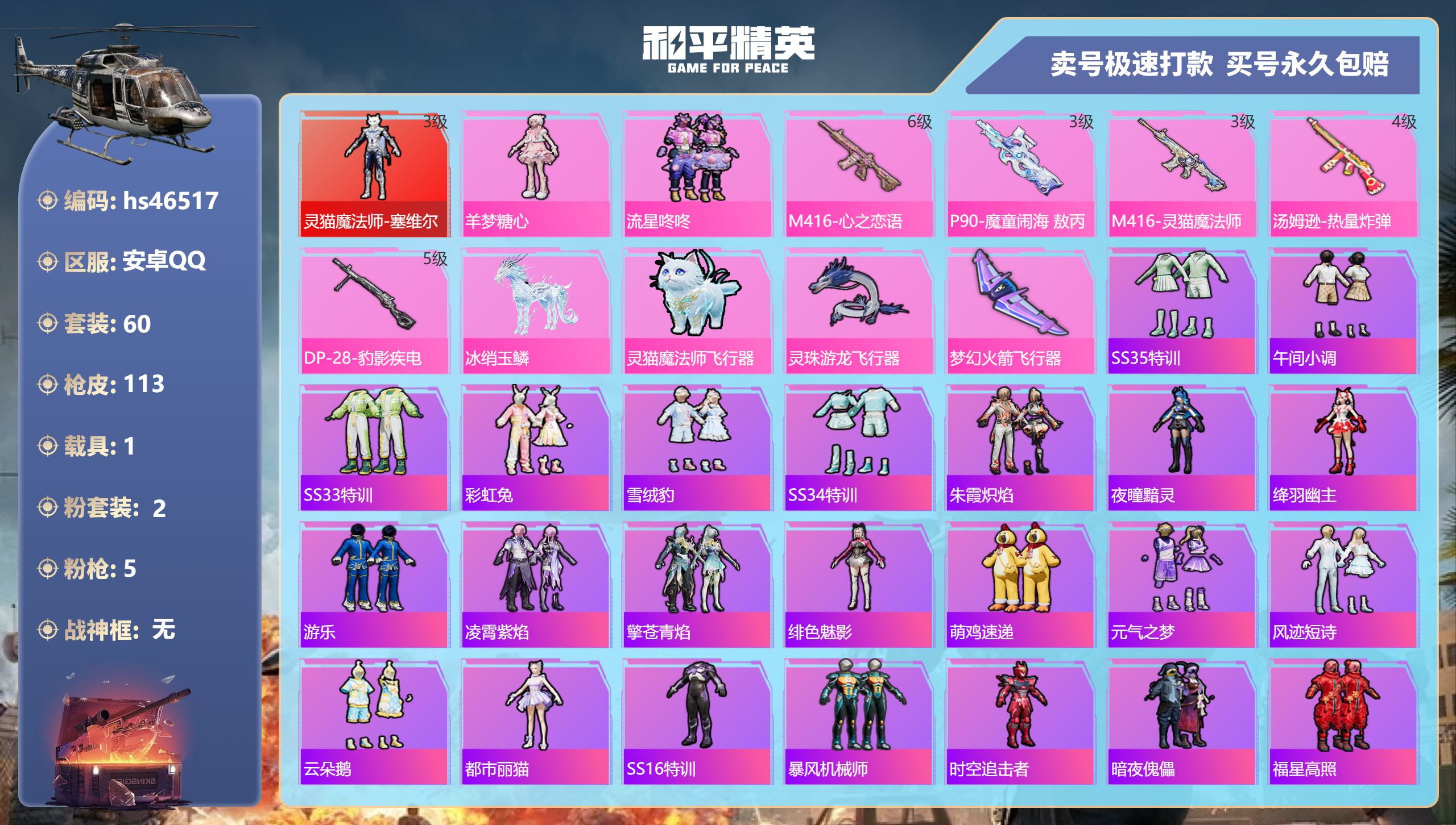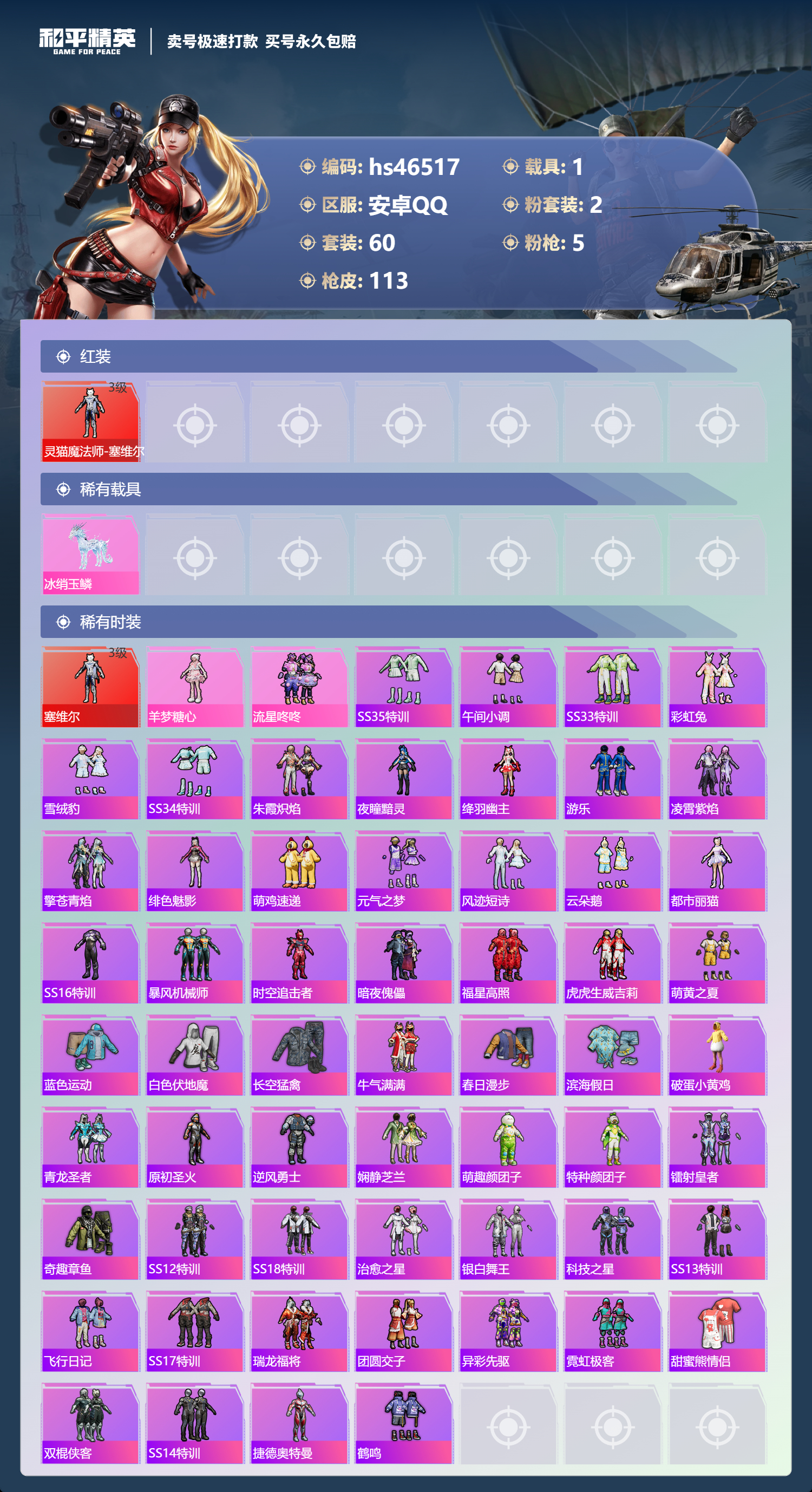 游戏区服:和平精英 / 安卓系统 / QQ账号