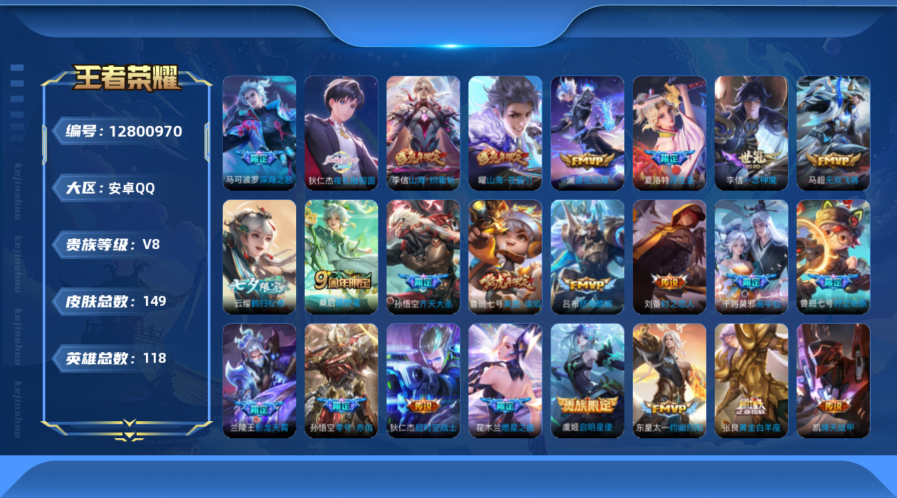 【10989768】【可二次】【QQ(安卓)】大漠名商 画中仙 影龙天霄 一念神魔 无双飞将 擒涛扼浪 黄金白羊座 绛天战甲 傲雪梅枪 飞衡 山海·炽霜斩 寅虎·瑞焰 海盐诗旅 山海·苍雷引 浮生妄 电玩·雷克斯 超时空战士 古海寻踪 零号·赤焰 时之恋人 齐天大圣 探海日记 鹤归松栖 深海之息 逐花归海 夜礼服假面 云中旅人 时之奇旅 燃星之曲 怒海麟威 灼幽烈阳