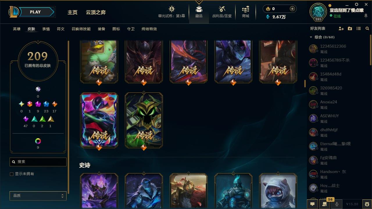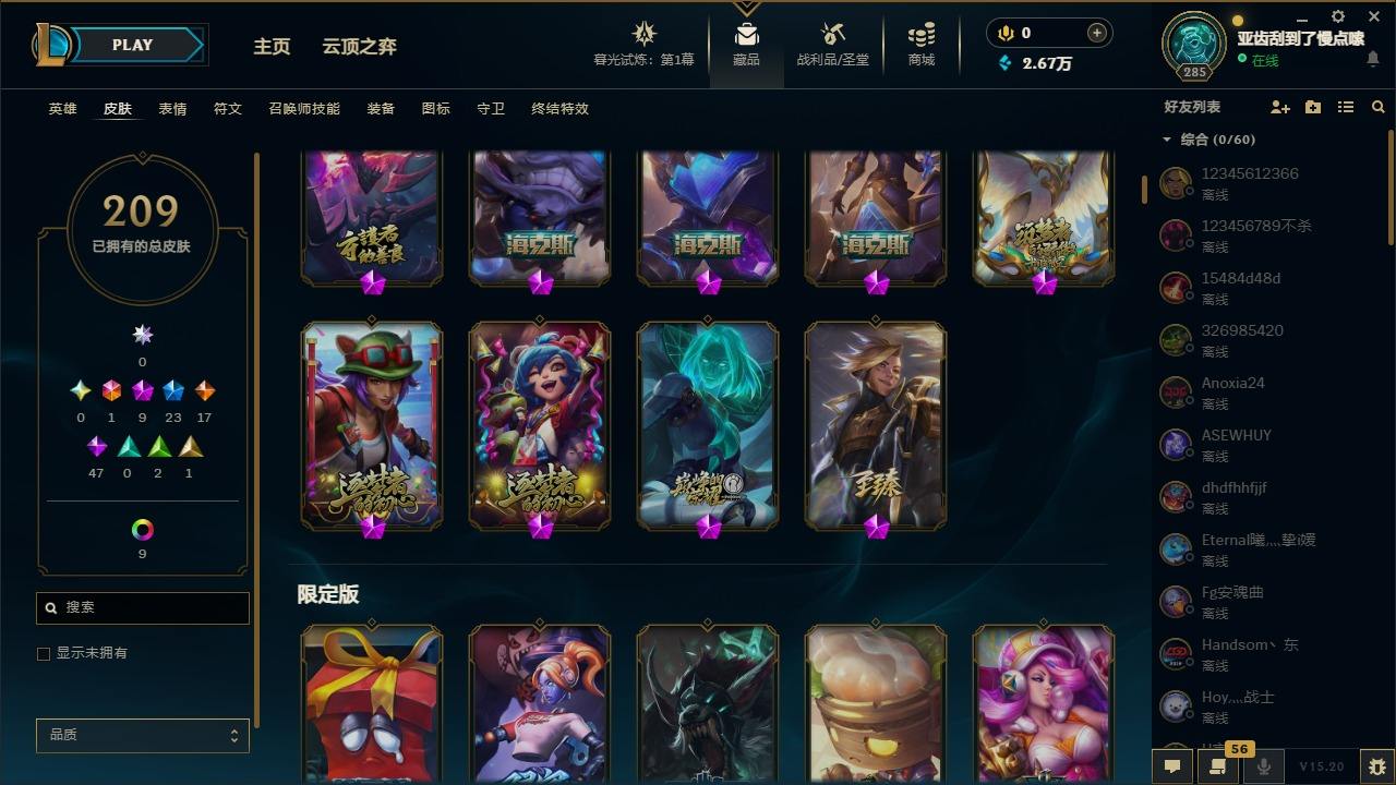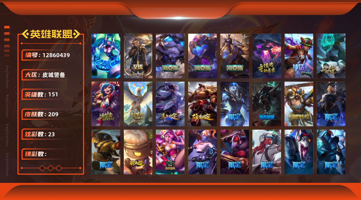 【11002684】[12860439]1终极 9神话 23限定 17传说 47史诗 209皮肤 23炫彩 151英雄 可二次 可修改实名 【至臻】:至臻 灵能特工 伊泽瑞尔【海克斯】:海克斯 吉格斯,海克斯 拉莫斯,海克斯 瑟庄妮【冠军限定系列】:S2 暗杀星 发条,S3 SKT T1 劫,S4 SSW 炼金,S5 SKT T1 雷克顿,S5 SKT T1 阿兹尔,S6 SKT T1 球女,S