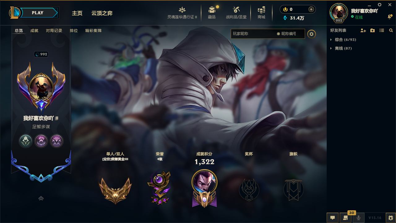 游戏区服:英雄联盟 / 电信 / 皮尔特沃夫