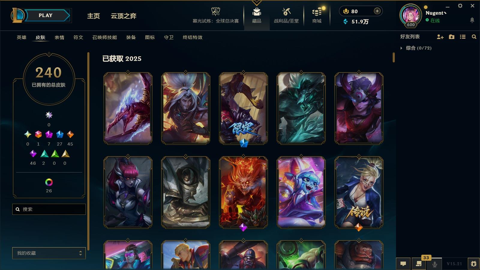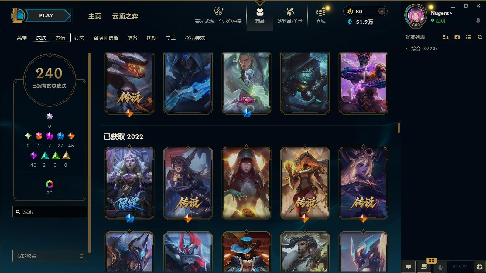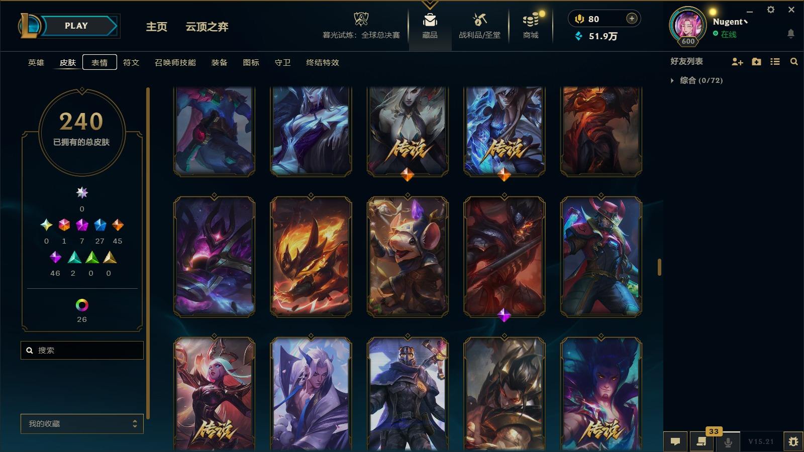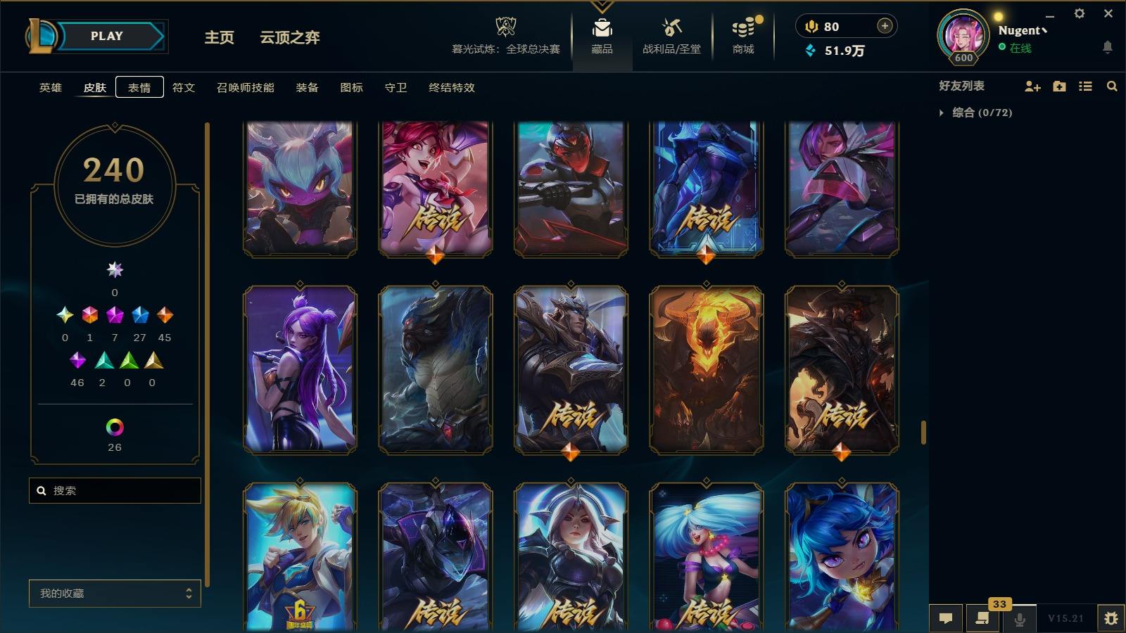 【11036146】[13025412]1终极 7神话 27限定 45传说 46史诗 240皮肤 40炫彩 171英雄 可二次 可修改实名 【至臻】:至臻 心之钢 永恩,至臻 T1 杰斯,至臻 真实伤害 赛娜,殿堂传奇 乐芙兰【情人节限定】:觅心女王 艾希,水晶玫瑰 斯维因【赛季限定皮】:胜利女神-菲奥娜,胜利之王 泰达米尔,胜利枪神 卢锡安,胜利女神 瑟庄妮【冠军限定系列】:S3 SKT T1