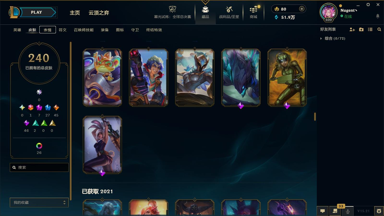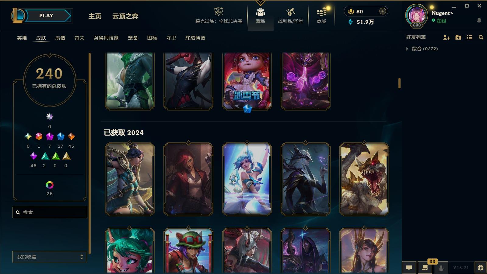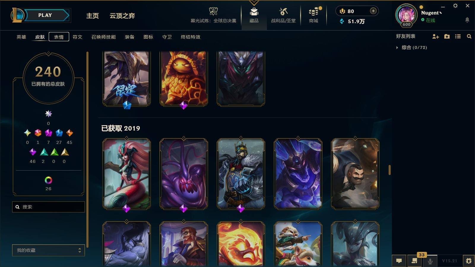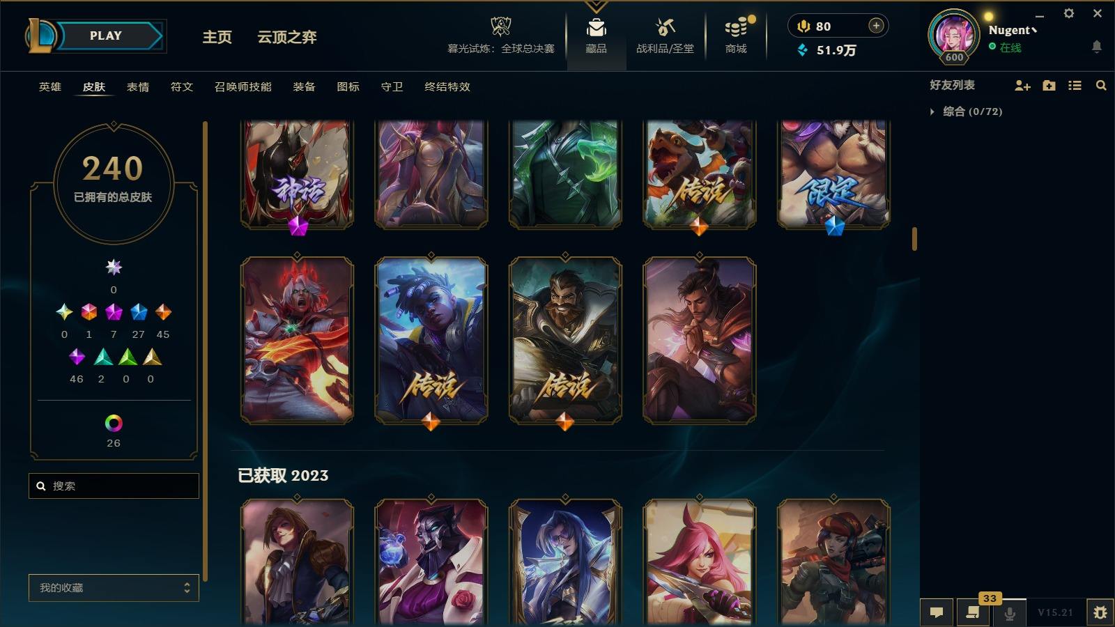 【11036146】[13025412]1终极 7神话 27限定 45传说 46史诗 240皮肤 40炫彩 171英雄 可二次 可修改实名 【至臻】:至臻 心之钢 永恩,至臻 T1 杰斯,至臻 真实伤害 赛娜,殿堂传奇 乐芙兰【情人节限定】:觅心女王 艾希,水晶玫瑰 斯维因【赛季限定皮】:胜利女神-菲奥娜,胜利之王 泰达米尔,胜利枪神 卢锡安,胜利女神 瑟庄妮【冠军限定系列】:S3 SKT T1