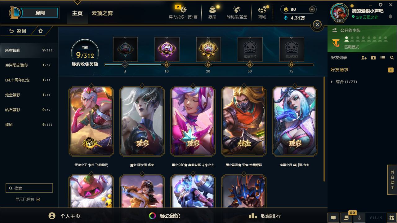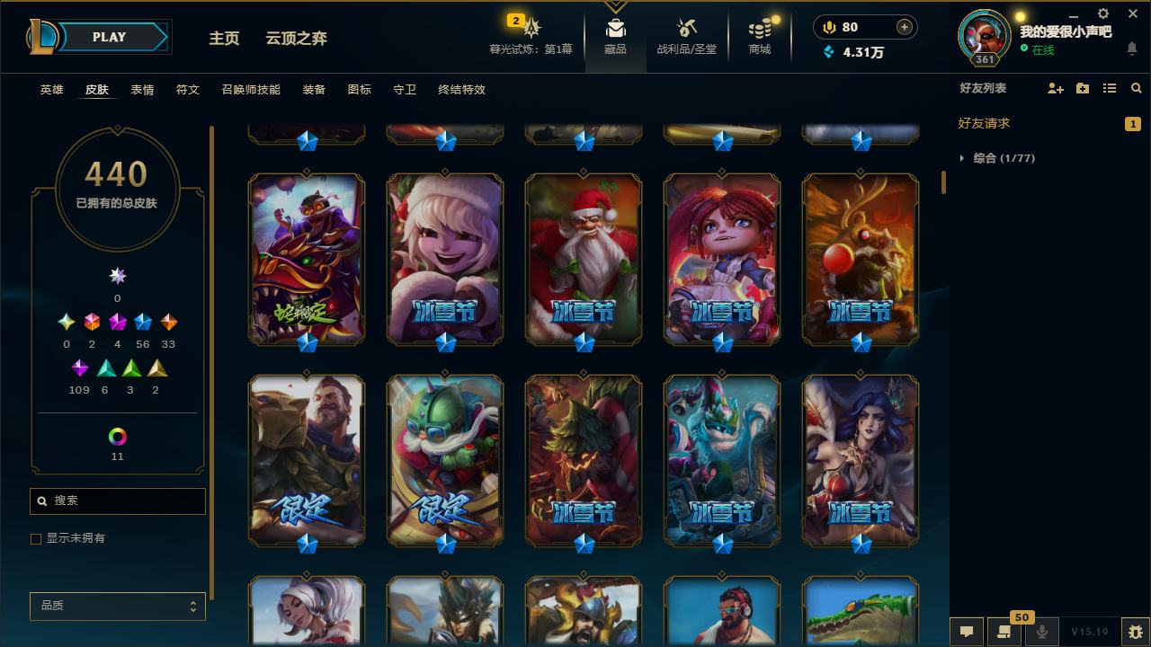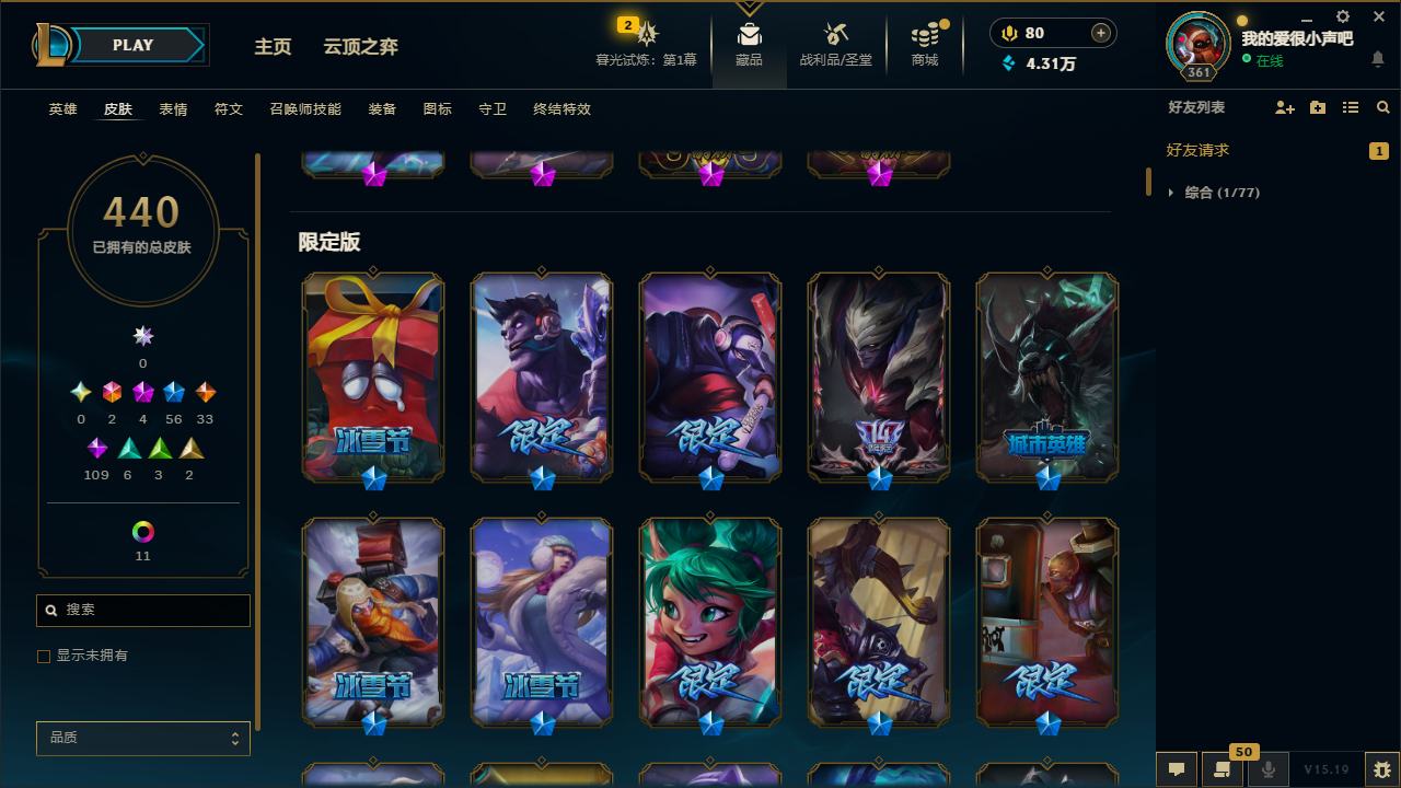 【11041035】[13051744]玉剑男刀!E12120.德玛西亚-440皮2终极4神话56限定11炫彩9臻彩