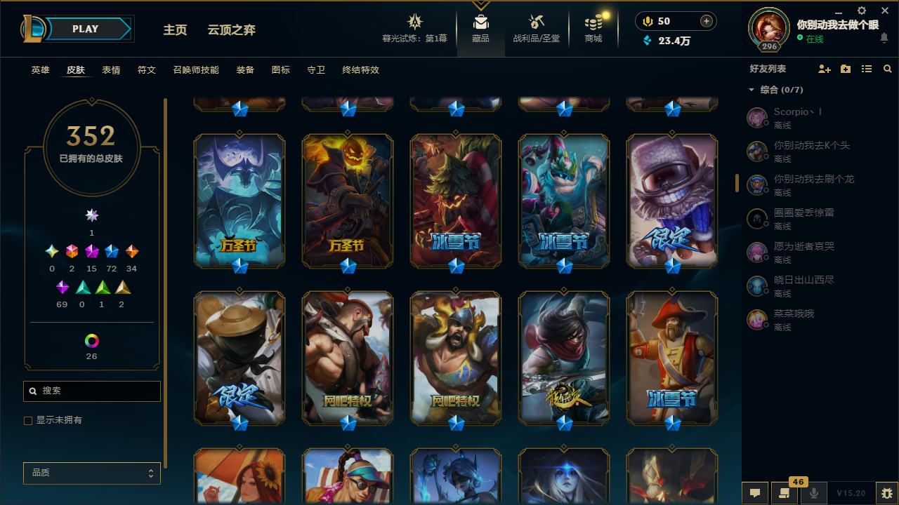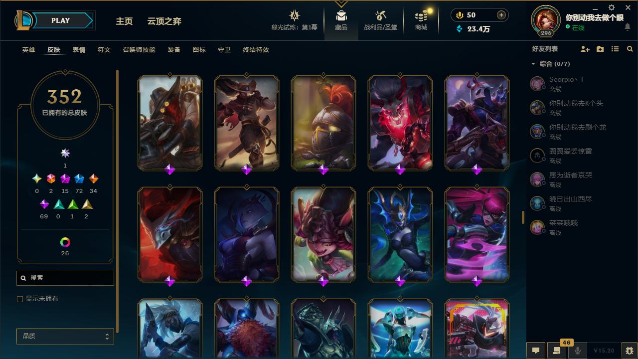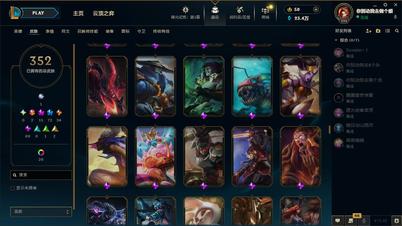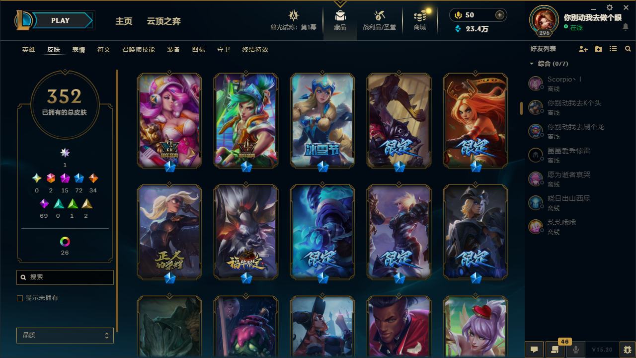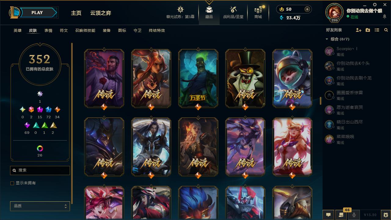 【11041128】[13052120]联盟不朽卡莎!夜月幻龙小小亚索!E12124 皮尔特沃夫 352皮1卓越26炫彩8臻彩【重要皮肤】联盟不朽卡莎 殿堂传奇卡莎 T1塞拉斯至臻 T1杰斯至臻 心之钢永恩至臻 至高天奎桑提至臻 战斗学院蕾欧娜至臻 魔女婕拉至臻 源计划逆流塞拉斯至臻 KDA一代卡莎至臻 KDA阿狸至臻 电玩女神凯特琳至臻 电玩女神凯特琳2022至臻 殿堂传奇薇恩 灰烬骑士莫德凯