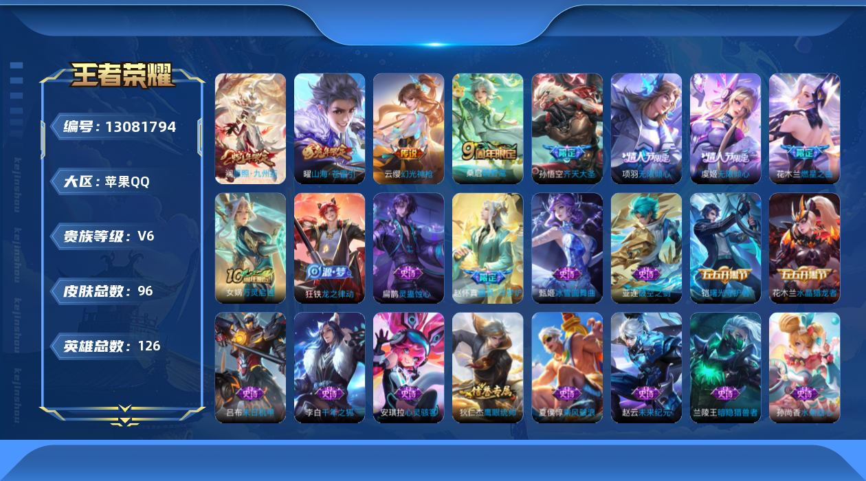 游戏区服:王者荣耀 / 苹果系统 / QQ帐号
