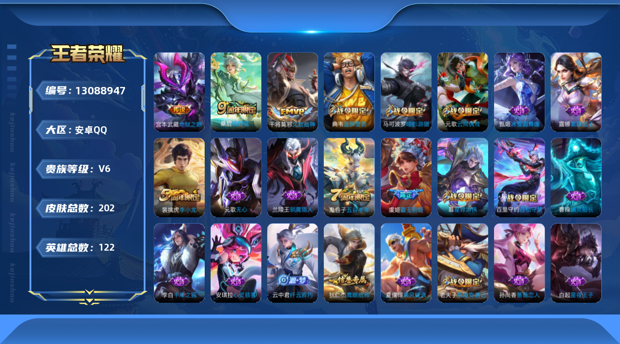 游戏区服:王者荣耀 / 安卓系统 / QQ账号