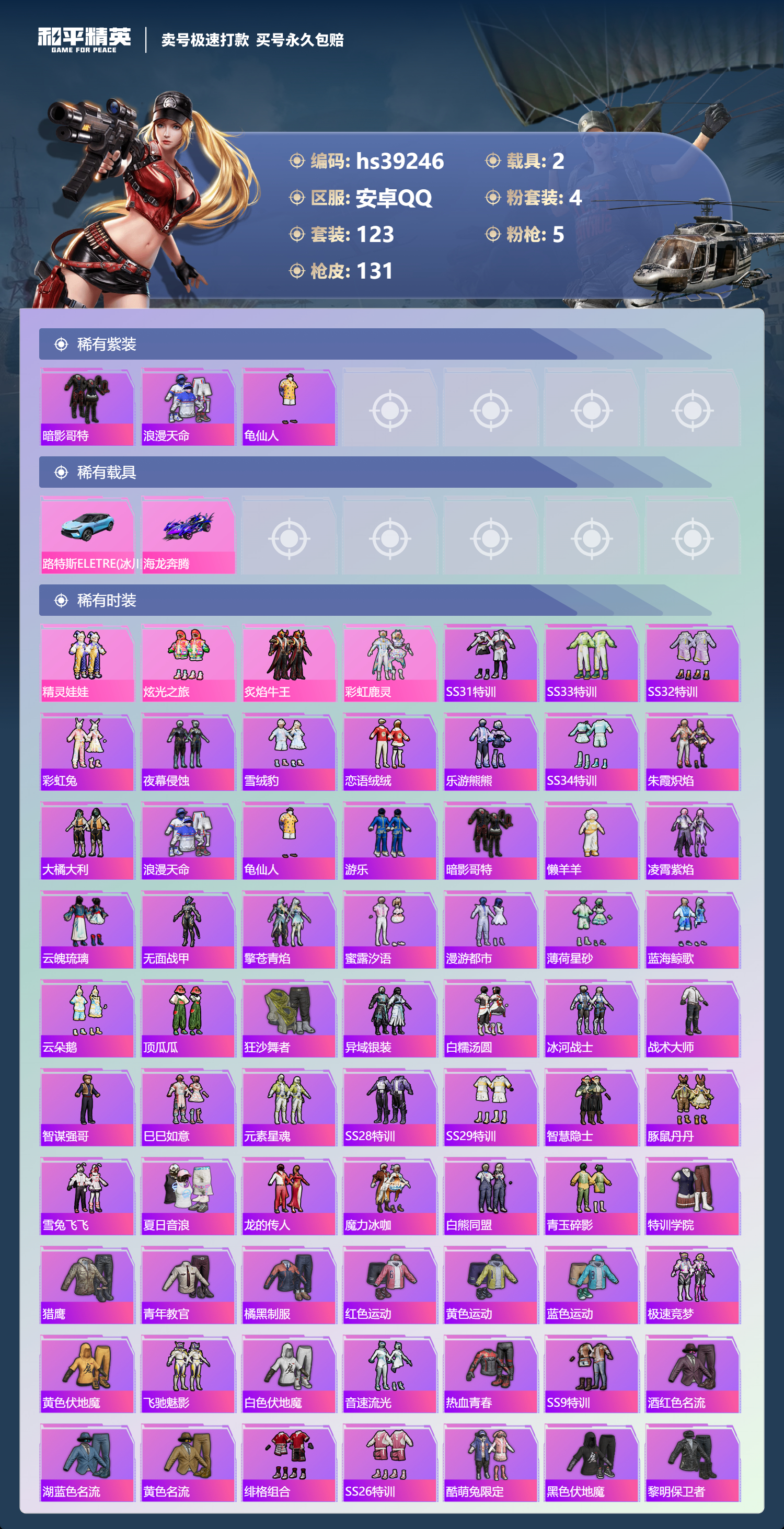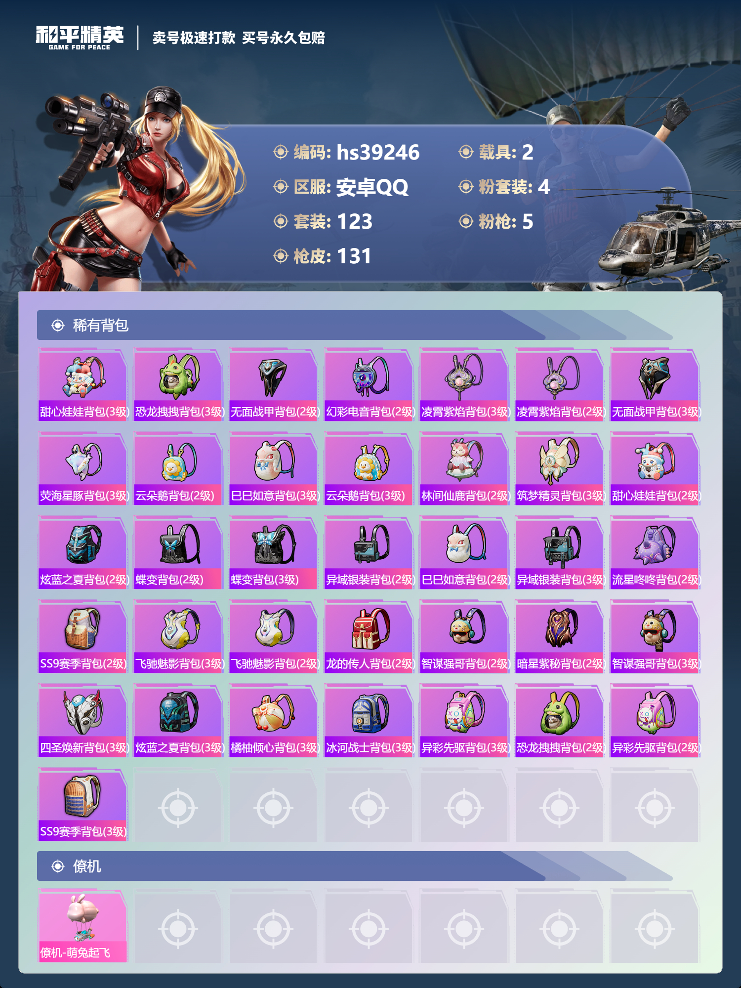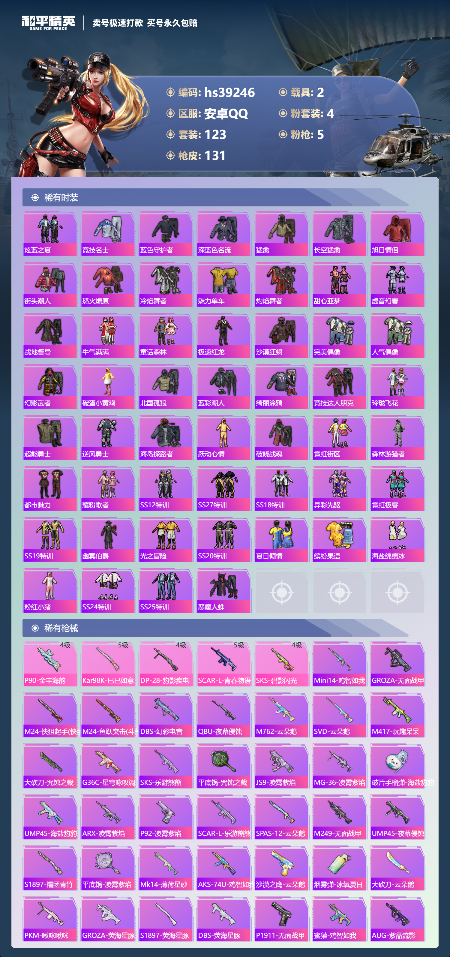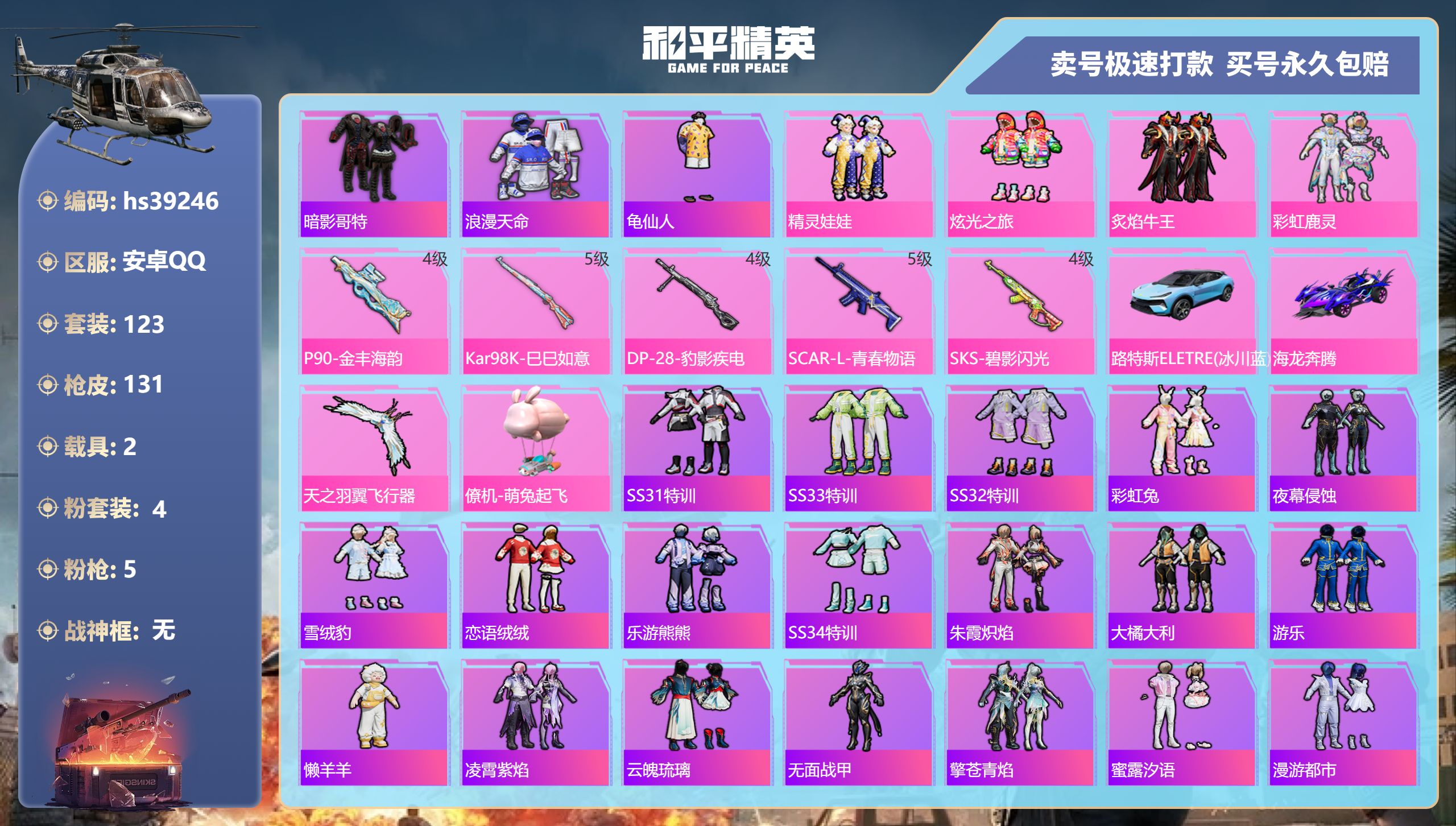 游戏区服:和平精英 / 安卓系统 / QQ账号