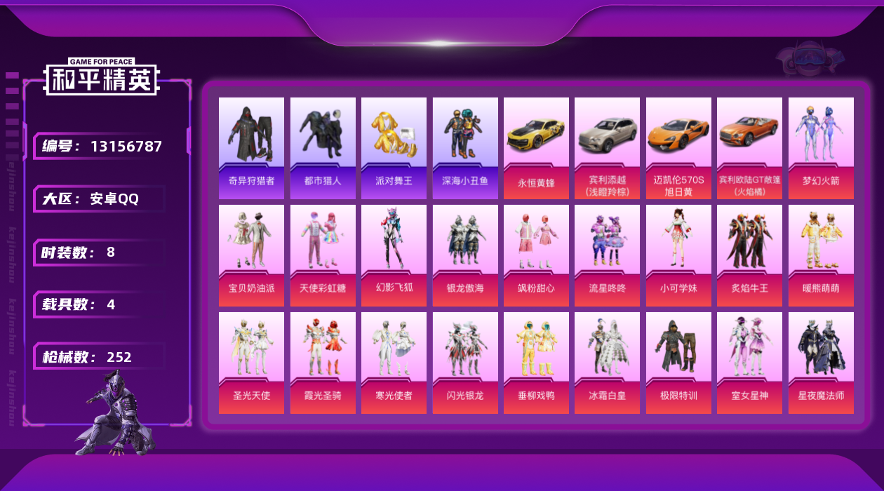 【11064454】【不可二次】【安卓QQ】龟仙人 M16A4-垂柳戏鸭 迈凯伦570S 旭日黄 S686-奇异狩猎者 AKM-星际浪客 漫步者 萌兔起飞 都市猎人 M24-奇异狩猎者 MG3-炙焰牛王 东方飞龙 极限特训 极速红龙 流星咚咚 豚鼠丹丹 忍者信条 M762-奇异狩猎者 M416-暖熊萌萌 深海小丑鱼 M24-香水柠檬 瑞龙福将 纯白誓言 团圆交子 AKM-奇异狩猎者 宾利添越(浅