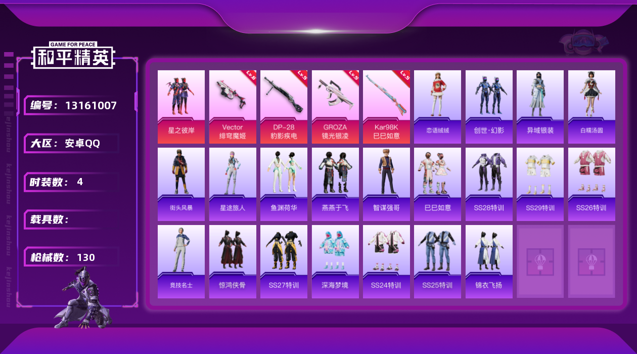 游戏区服:和平精英 / 安卓系统 / QQ账号