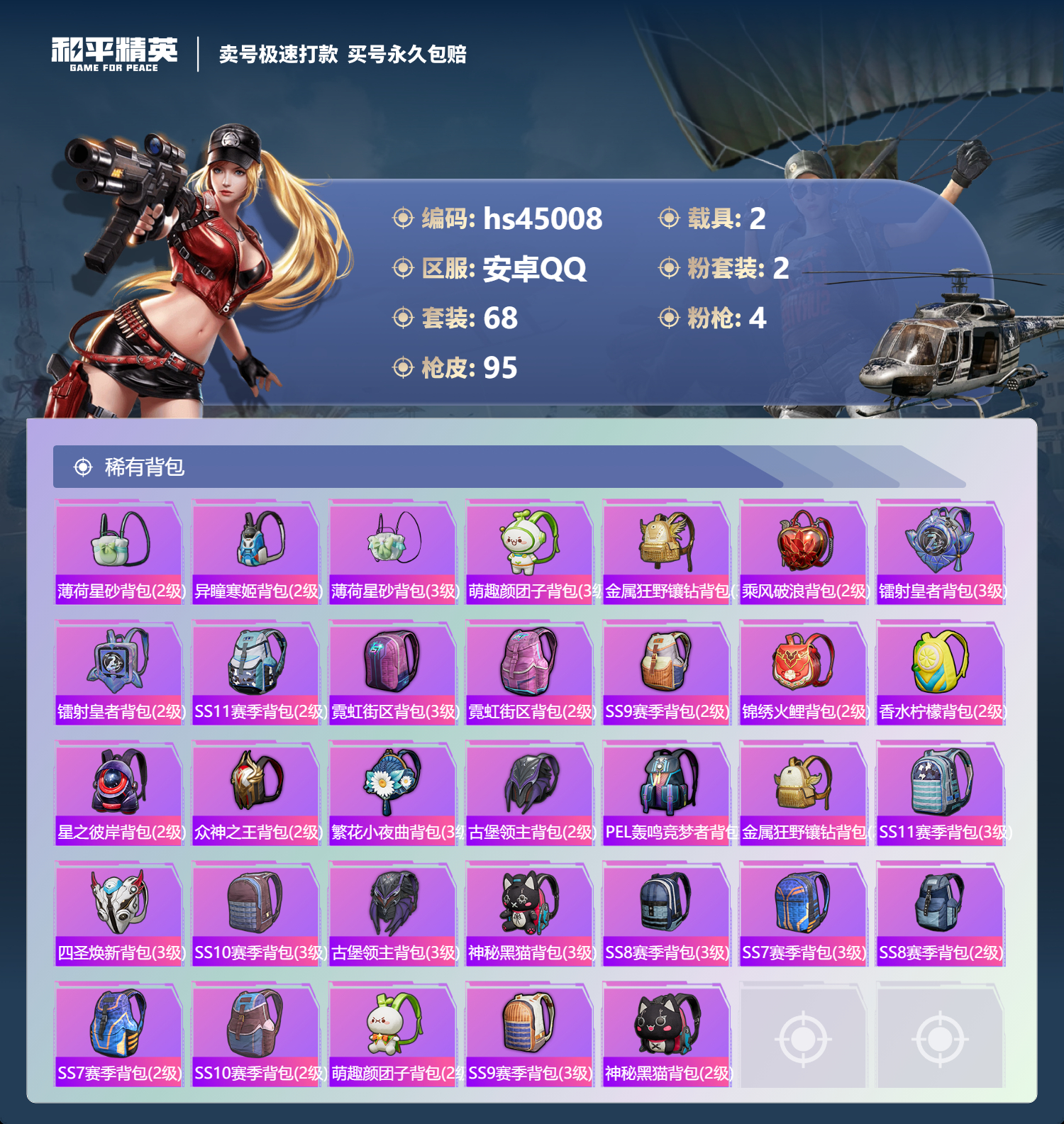游戏区服:和平精英 / 安卓系统 / QQ账号
