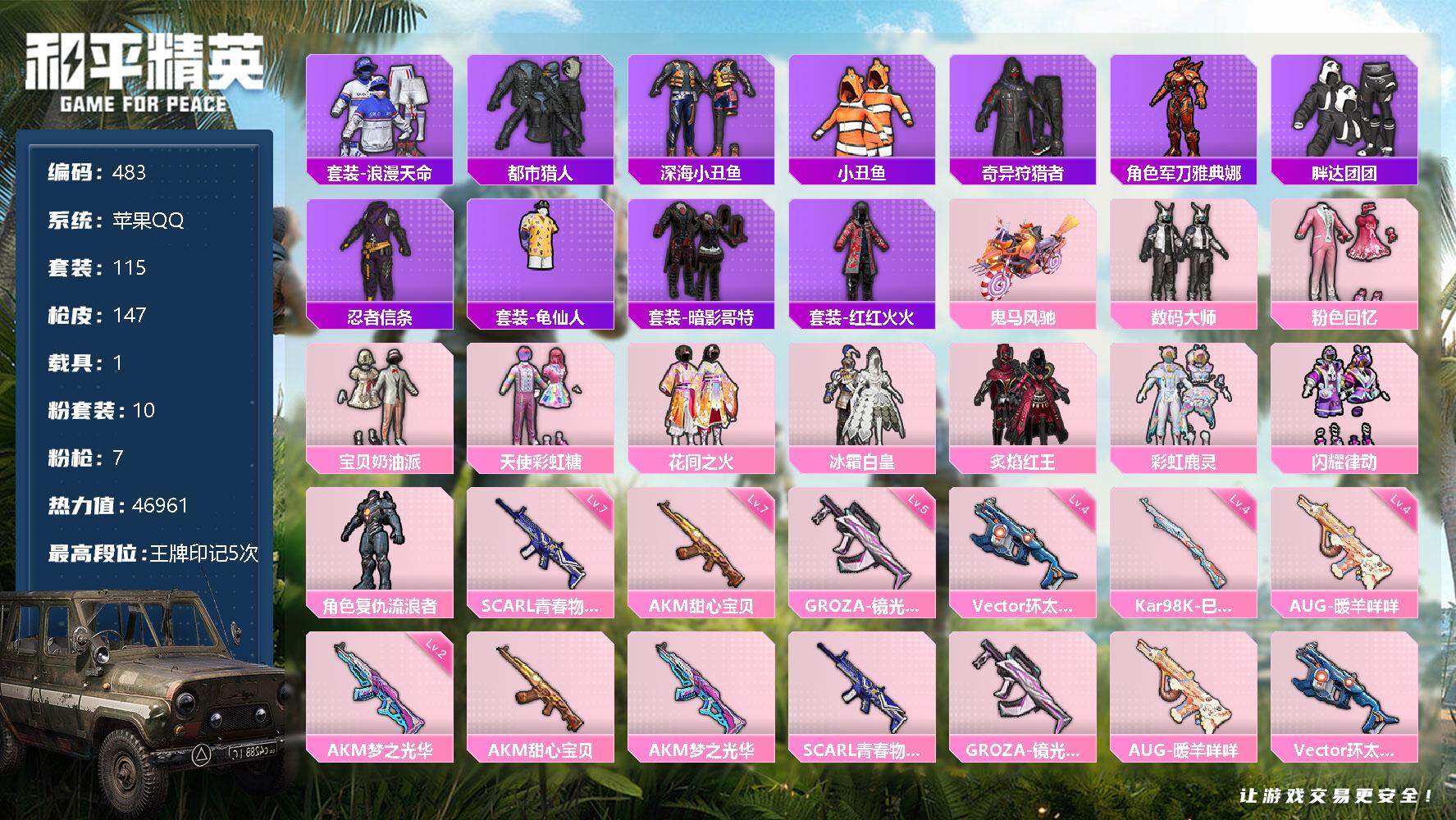 游戏区服:和平精英 / 苹果系统 / QQ帐号