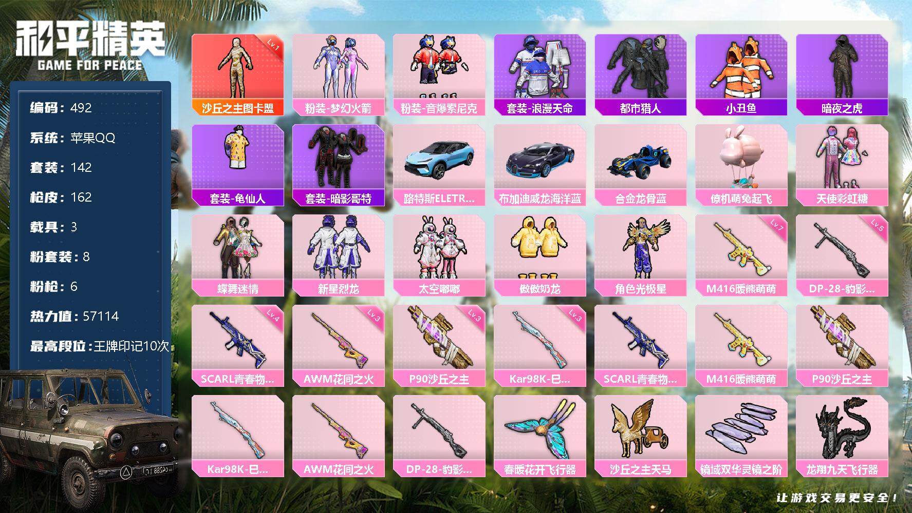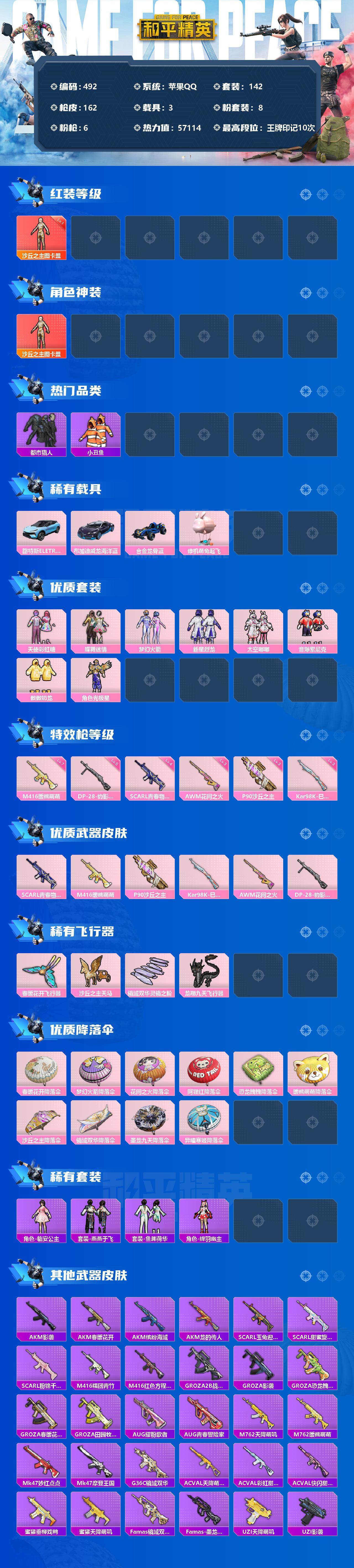 游戏区服:和平精英 / 苹果系统 / QQ帐号