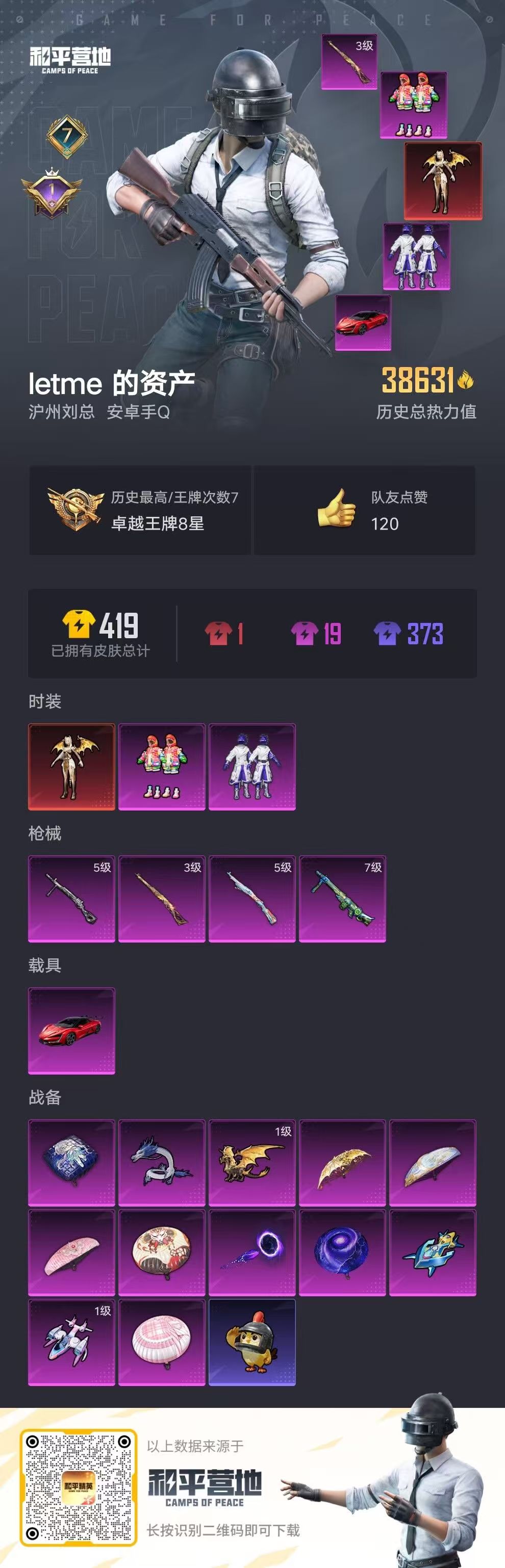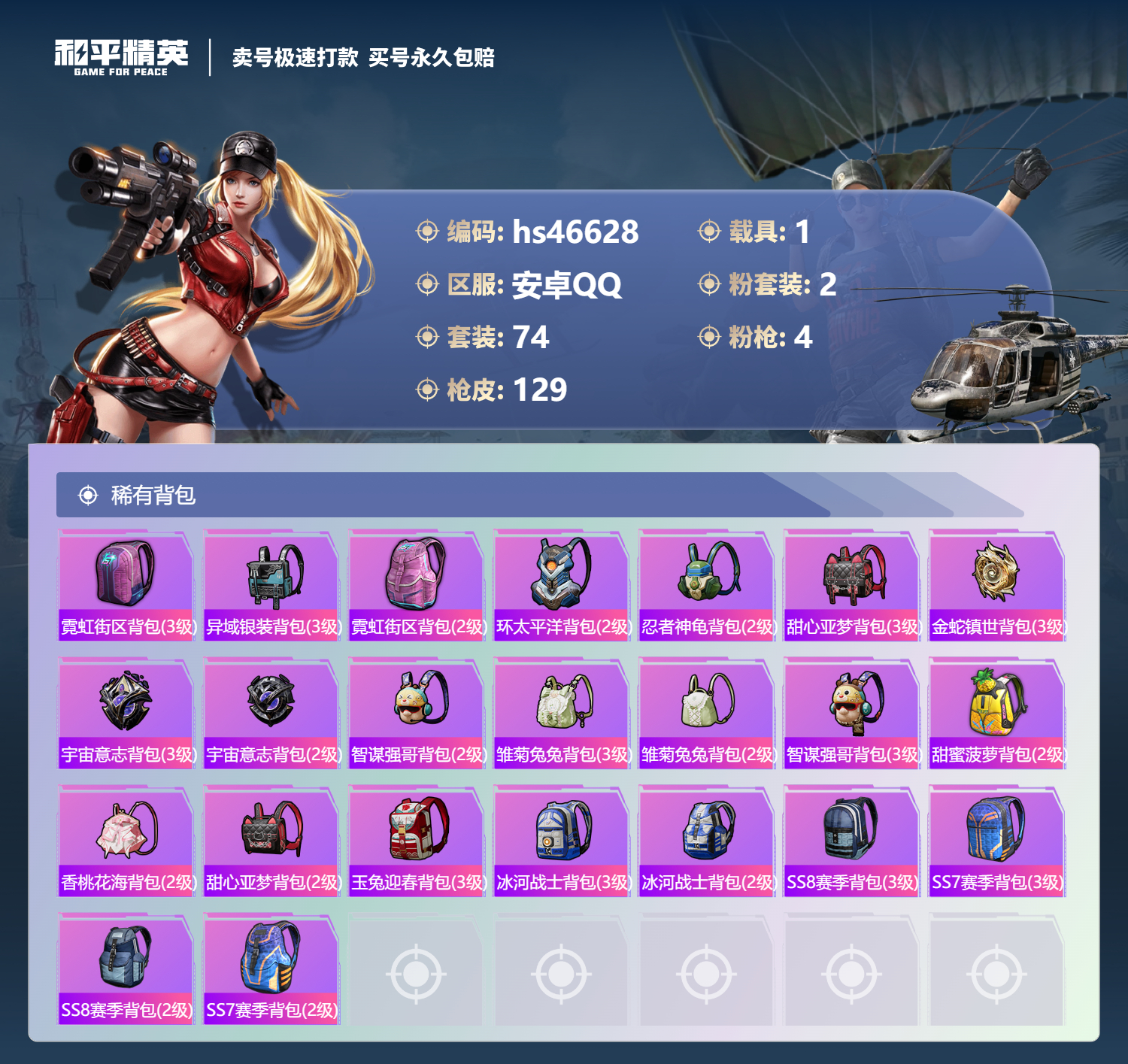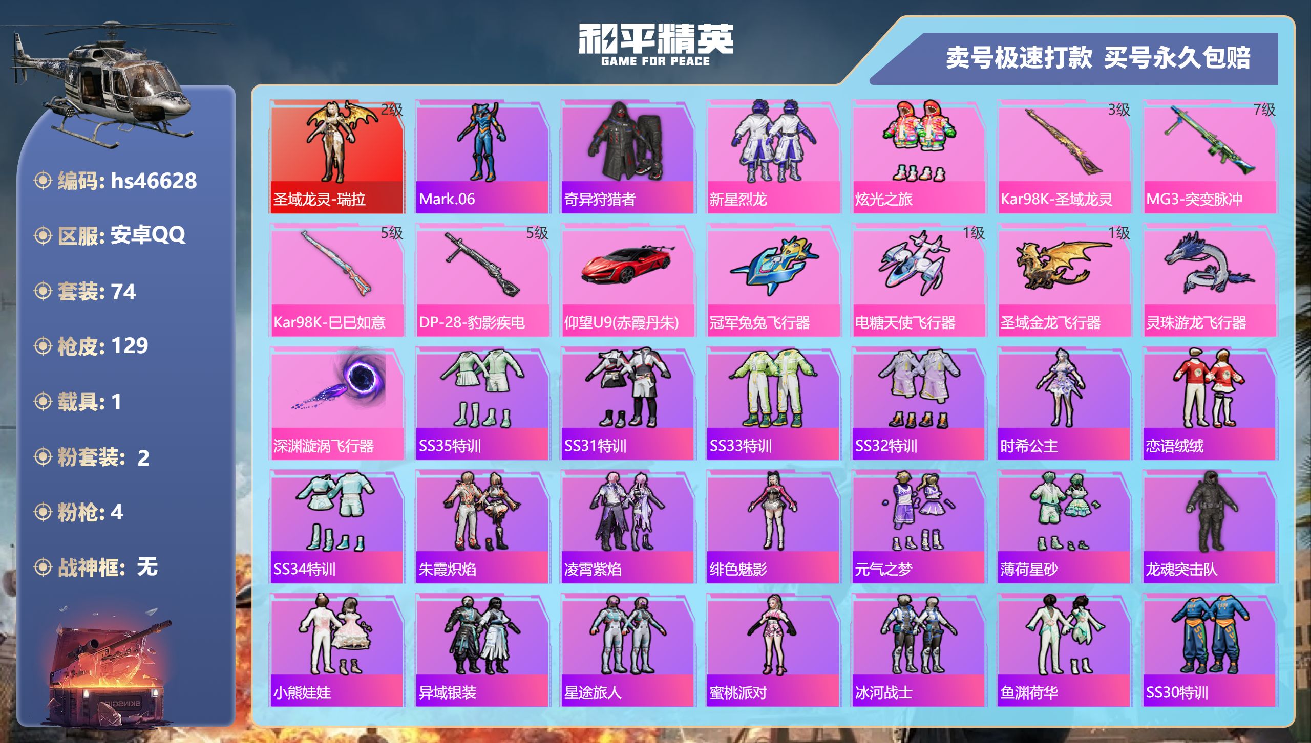 游戏区服:和平精英 / 安卓系统 / QQ账号