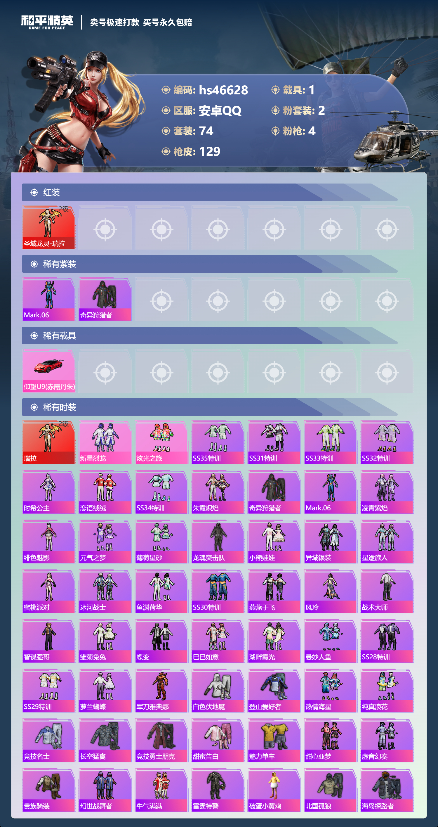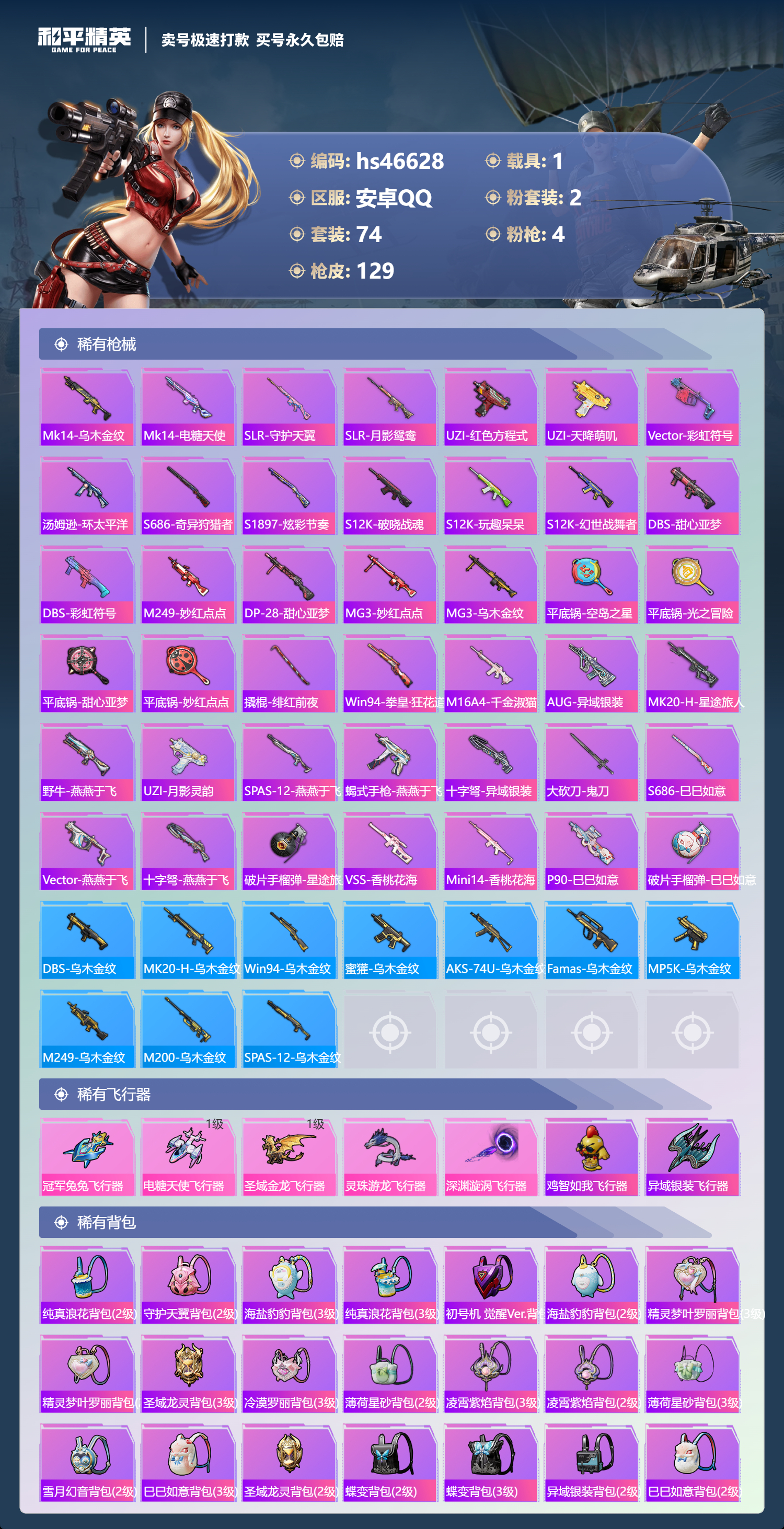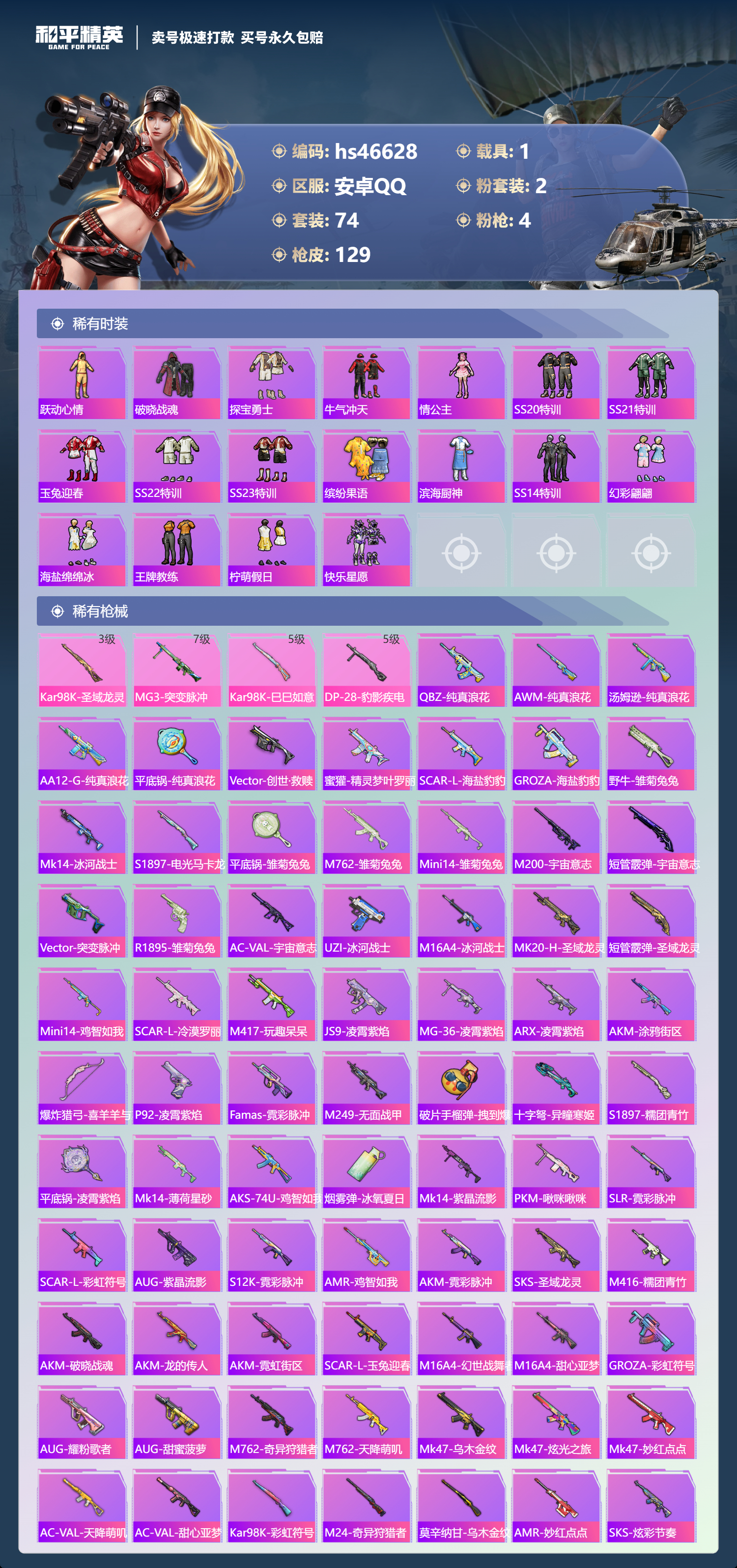 游戏区服:和平精英 / 安卓系统 / QQ账号