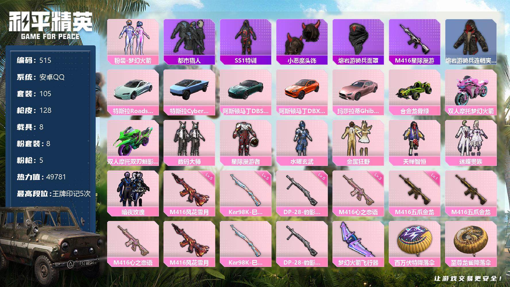 游戏区服:和平精英 / 安卓系统 / QQ账号