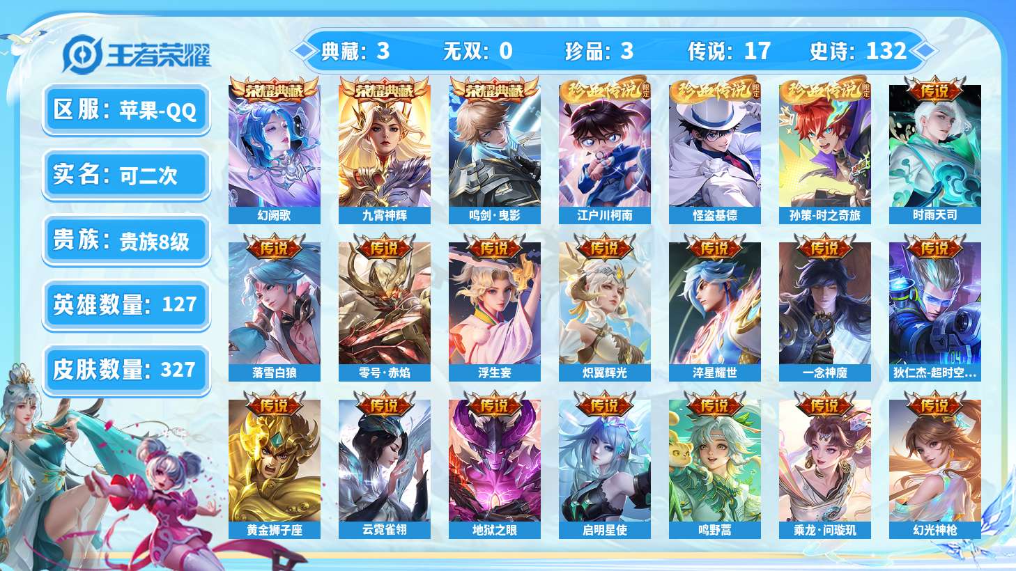 【11069201】【可二次】【QQ(苹果)】化身博士 水晶猎龙者 原初探秘者 炽弈燎原 烛龙 龙腾万里 缤纷独角兽 万华元夜 千军破阵 醍醐杖 危途狂花 电玩小子 女武神 魅力维加斯 功夫炙烤 狮舞东方 妄想特派 御旌 太极少年 乘风破浪 天穹之誓 铁甲之心 擒涛扼浪 掌控之力 白色死神 铁骨偃魂 鲨炮海盗猫 纤云弄巧 劲辣红锅 炽热元素使 朔望之晖 混沌棋 冰冠公主 破阵·退雄兵 次元突破