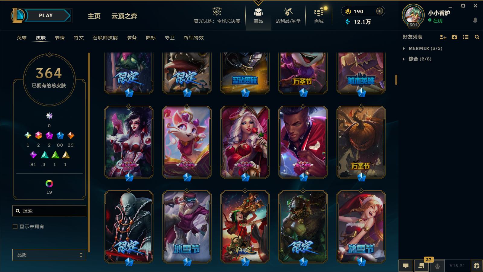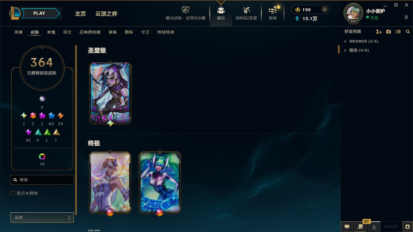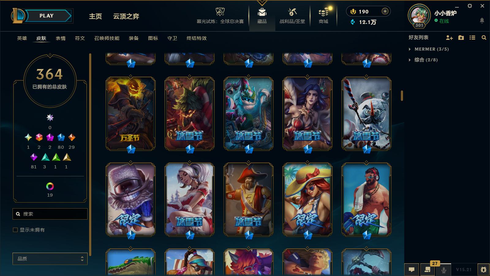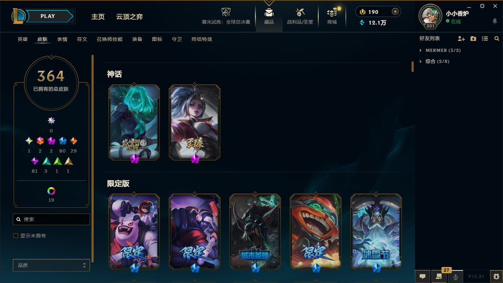 【11069412】[13178899]破碎者金克丝!IG卡莎!E12243.德玛西亚.364皮1圣堂2终极2神话80限定19炫彩11臻彩