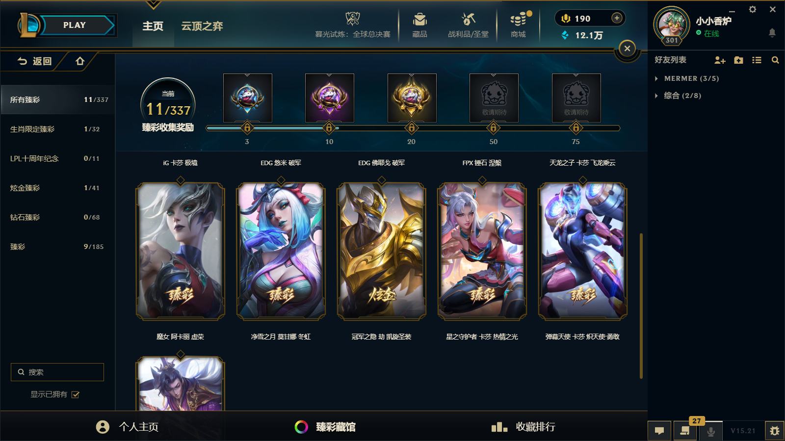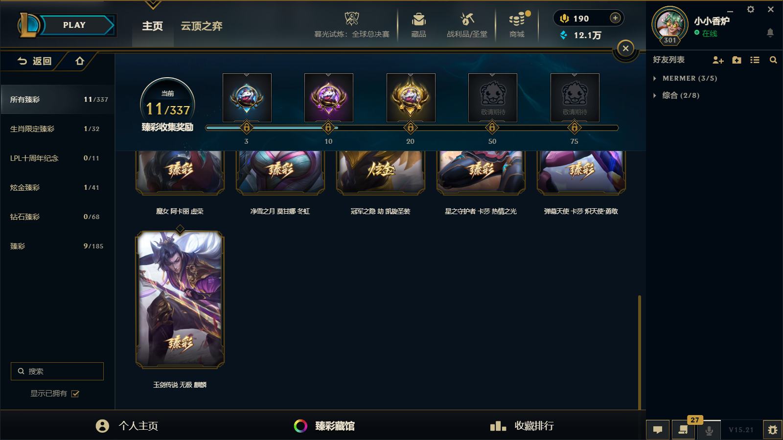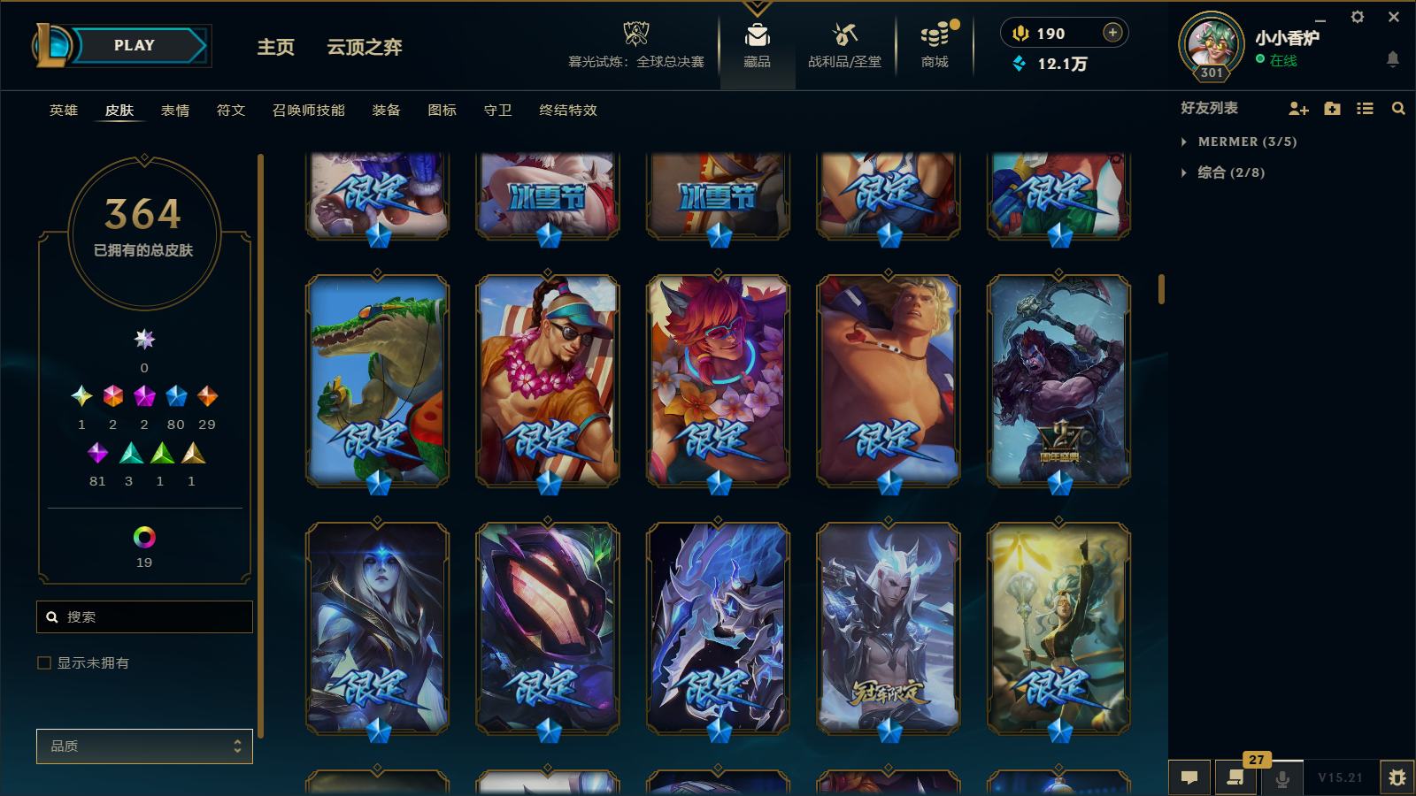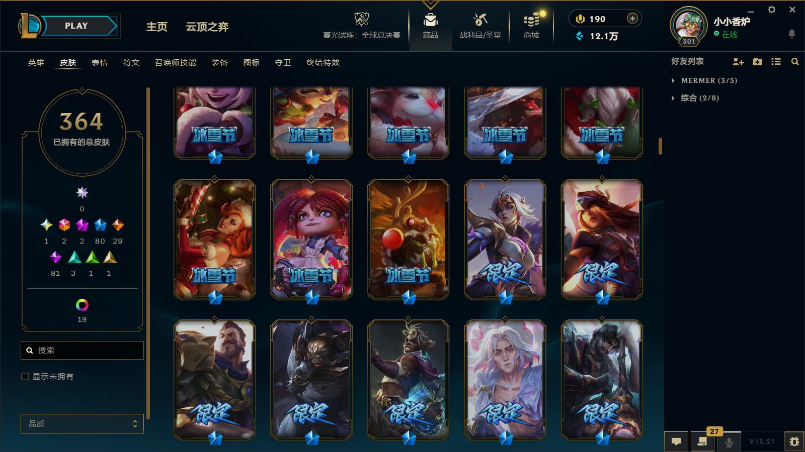 【11069412】[13178899]破碎者金克丝!IG卡莎!E12243.德玛西亚.364皮1圣堂2终极2神话80限定19炫彩11臻彩