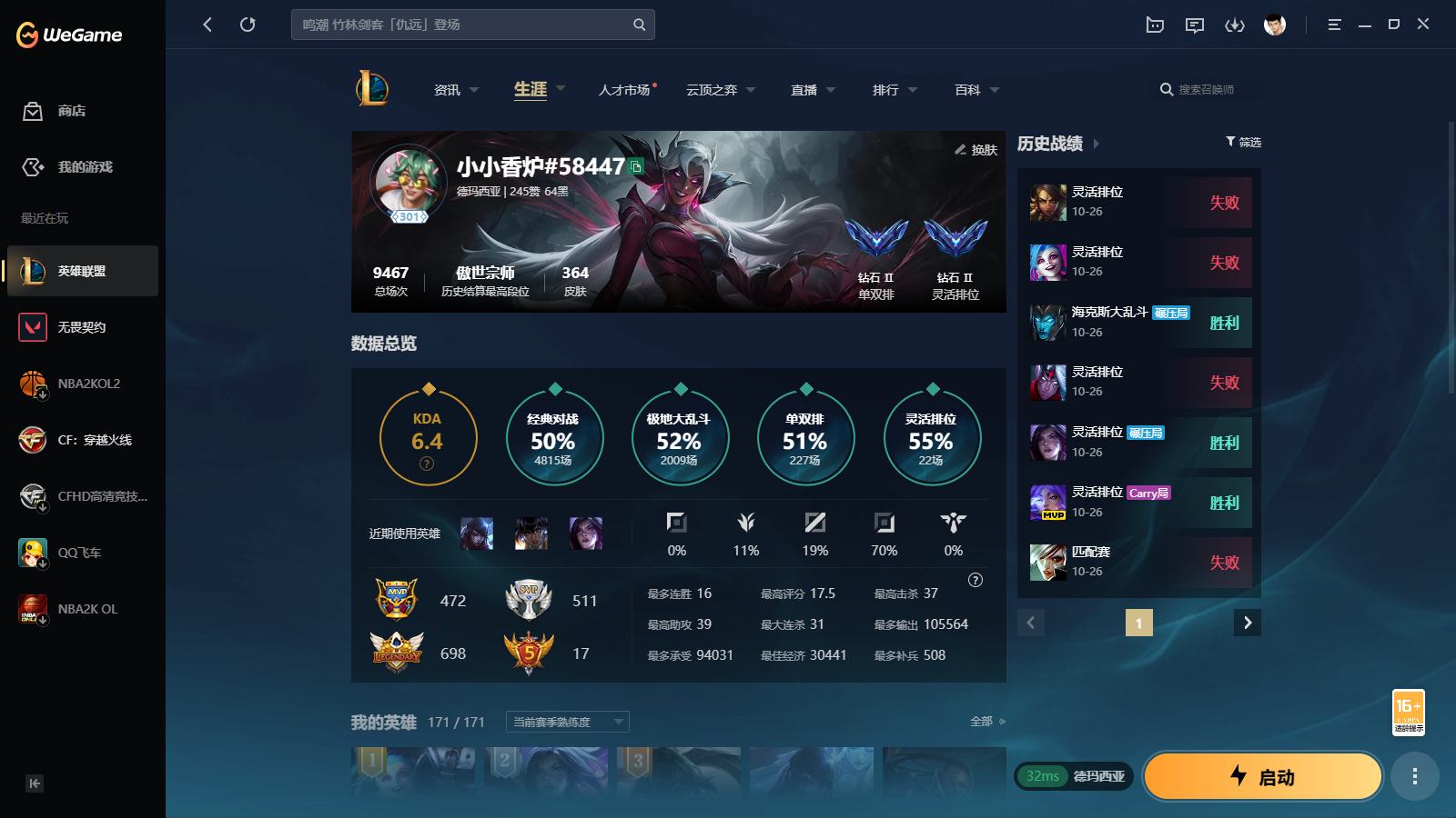 游戏区服:英雄联盟 / 网通 / 德玛西亚