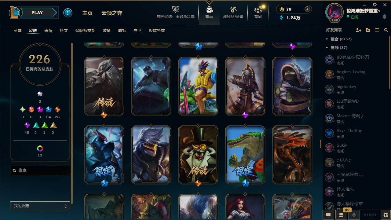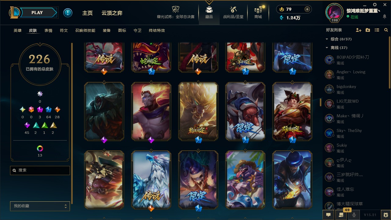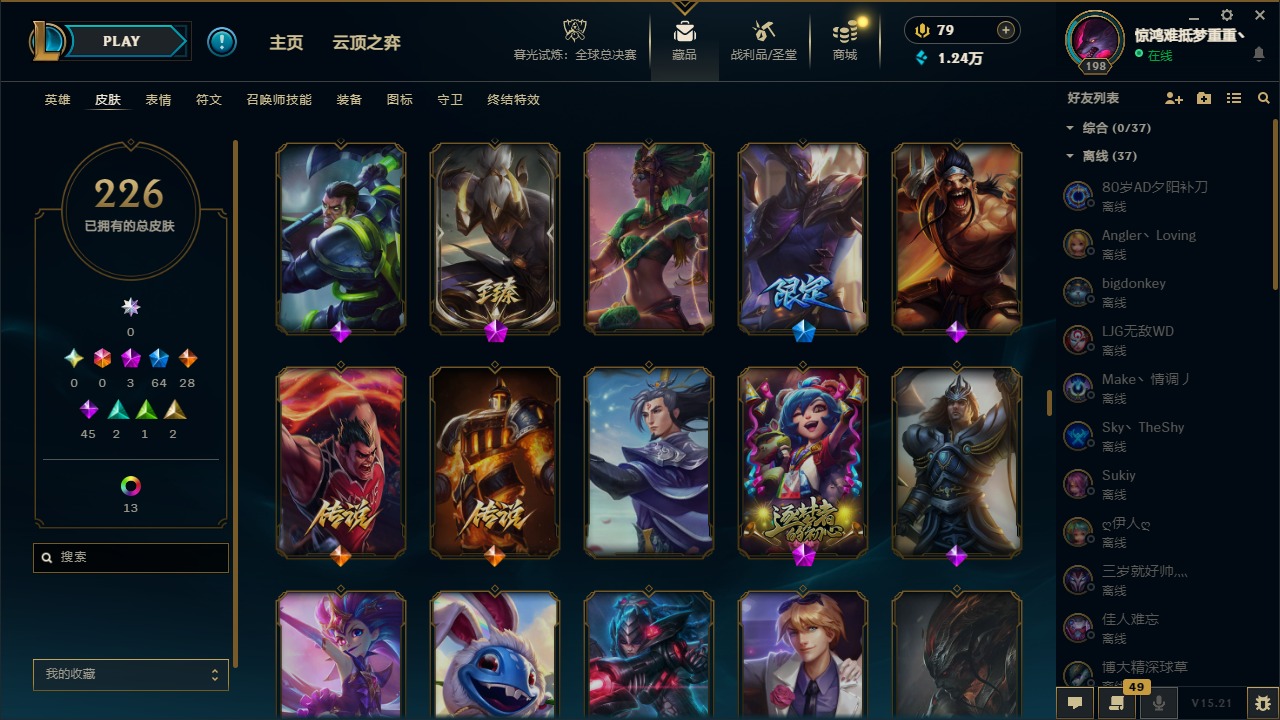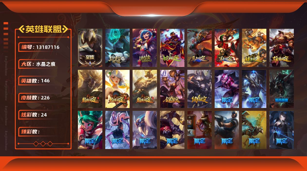 【11070900】3神话 64限定 28传说 45史诗 226皮肤 24炫彩 146英雄 可二次 可修改实名 【至臻】:至臻 黑夜使者 李青【限定】:黑夜使者 弗拉基米尔,创星之灵 璐璐,养蜂人 辛吉德【情人节限定】:觅心游侠 卢锡安【赛季限定皮】:胜利之剑 亚托克斯,胜利枪神 卢锡安【冠军限定系列】:S1FNC 酒桶,S1FNC 迦娜,S3 SKT T1 贾克斯,S4 SSW 锤石,S4 S