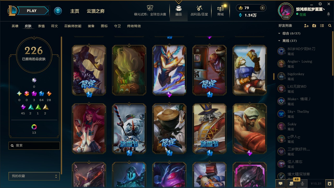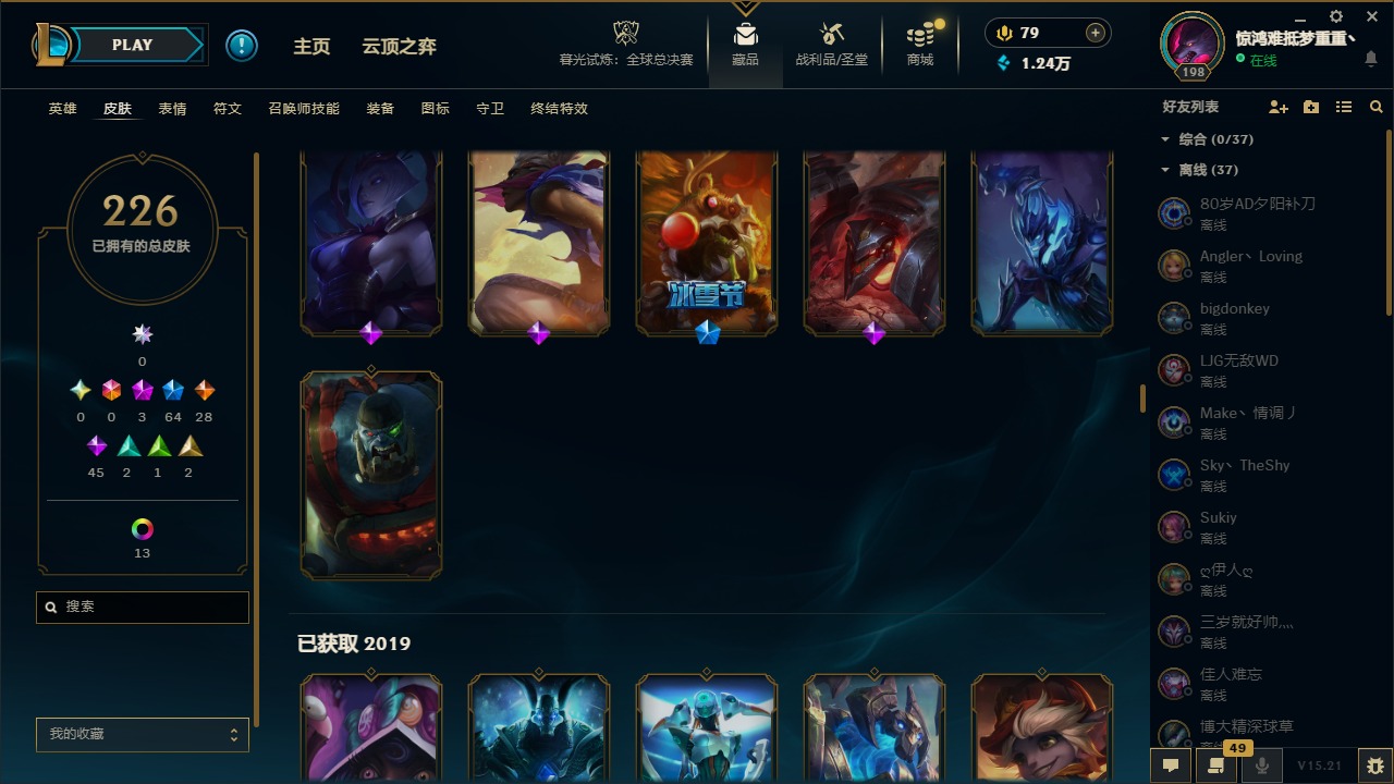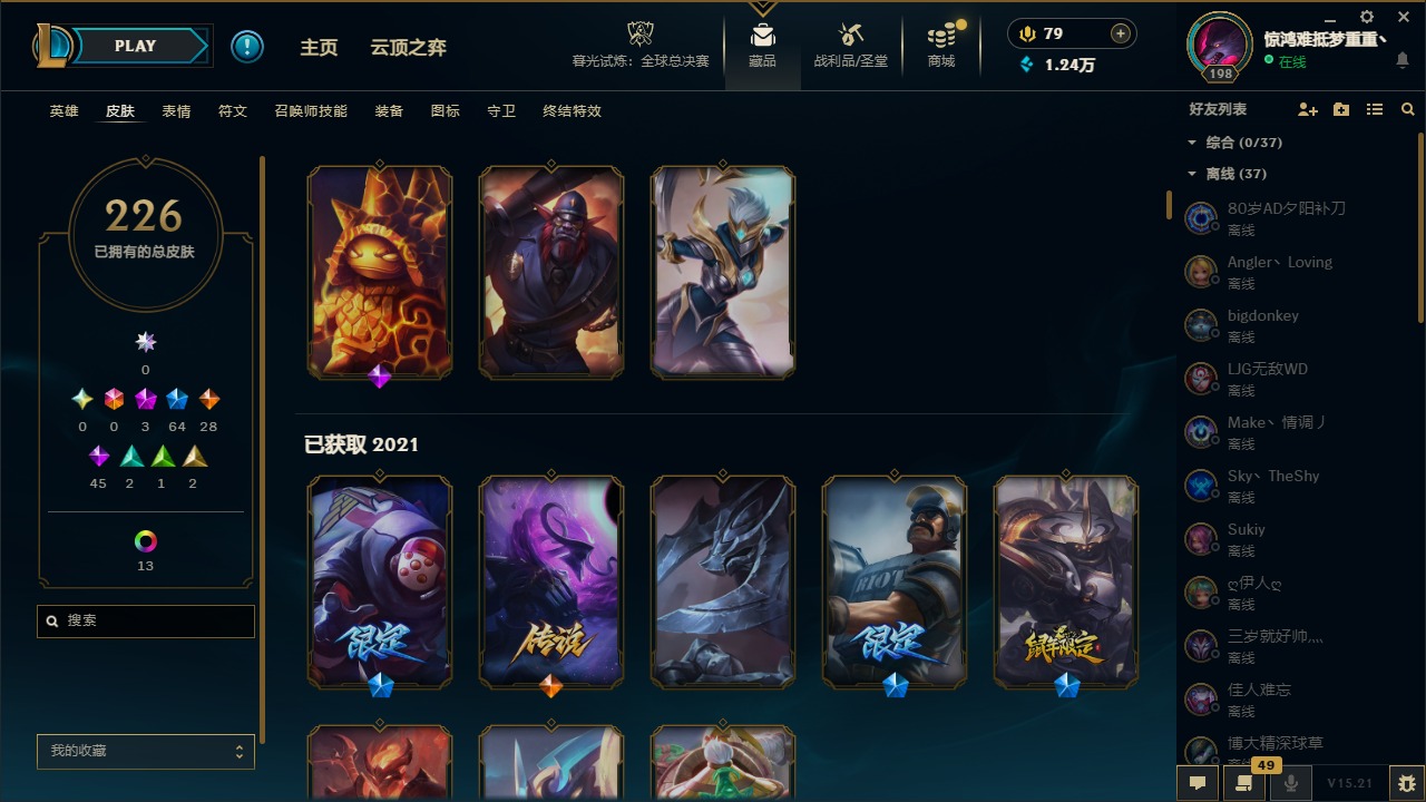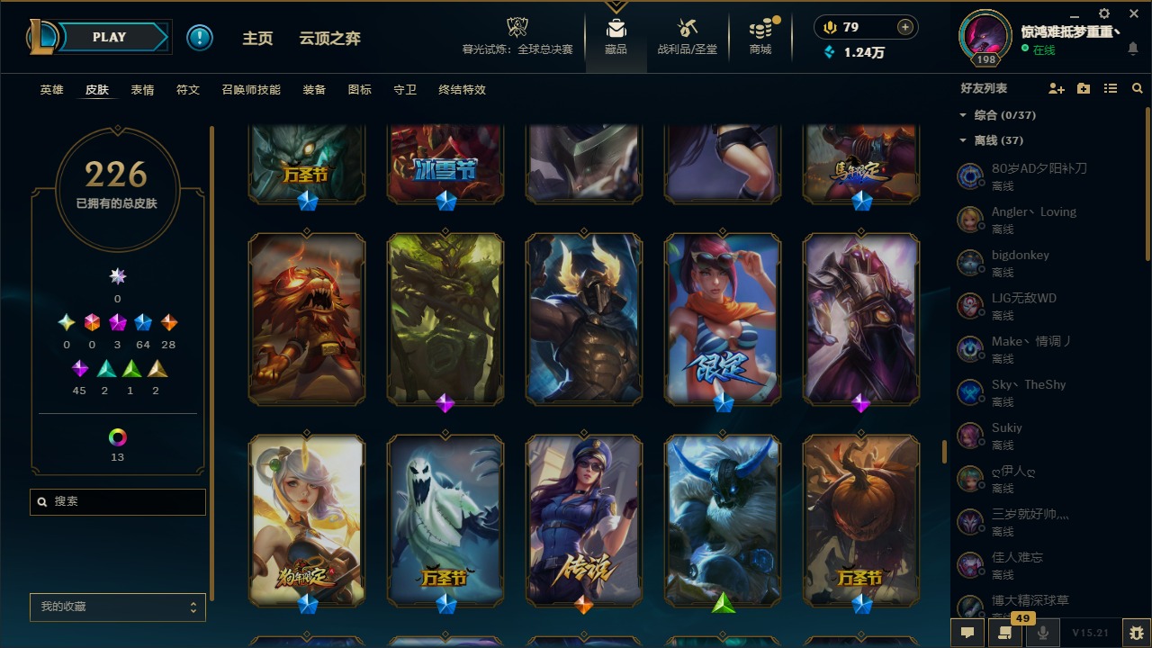 【11070900】3神话 64限定 28传说 45史诗 226皮肤 24炫彩 146英雄 可二次 可修改实名 【至臻】:至臻 黑夜使者 李青【限定】:黑夜使者 弗拉基米尔,创星之灵 璐璐,养蜂人 辛吉德【情人节限定】:觅心游侠 卢锡安【赛季限定皮】:胜利之剑 亚托克斯,胜利枪神 卢锡安【冠军限定系列】:S1FNC 酒桶,S1FNC 迦娜,S3 SKT T1 贾克斯,S4 SSW 锤石,S4 S
