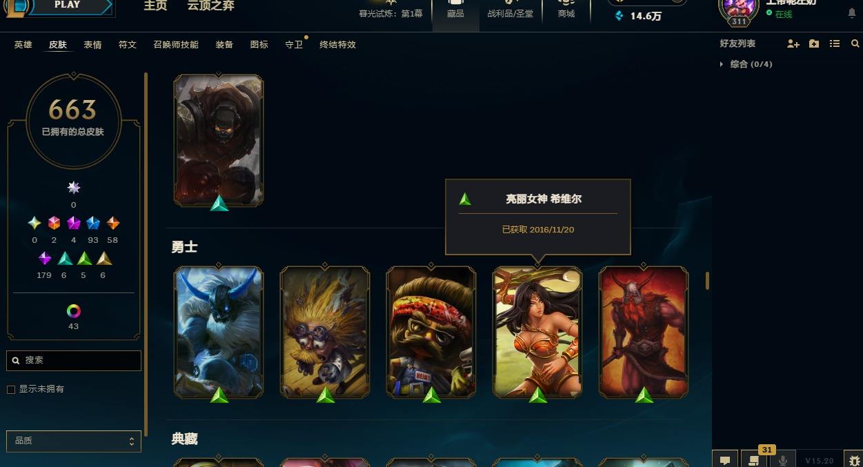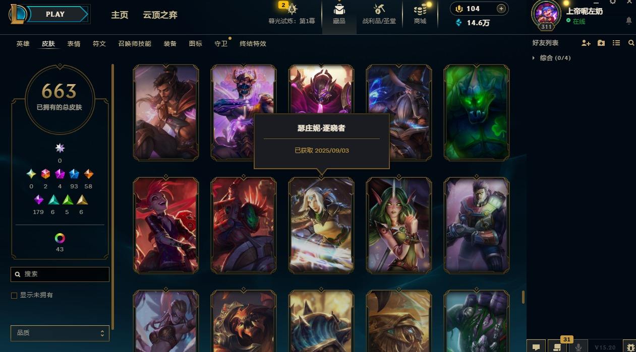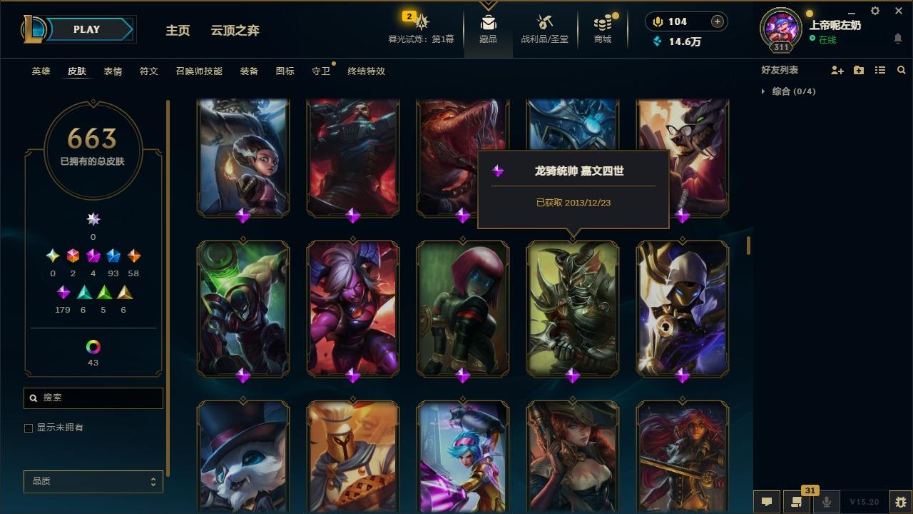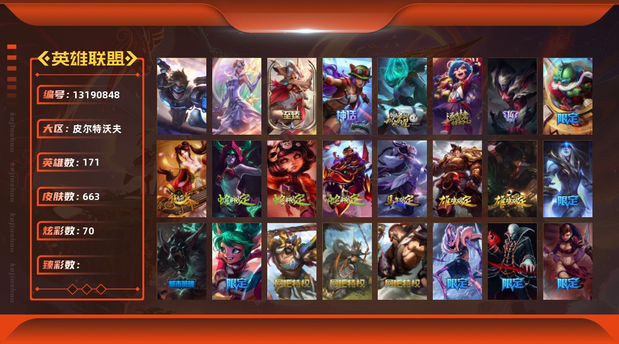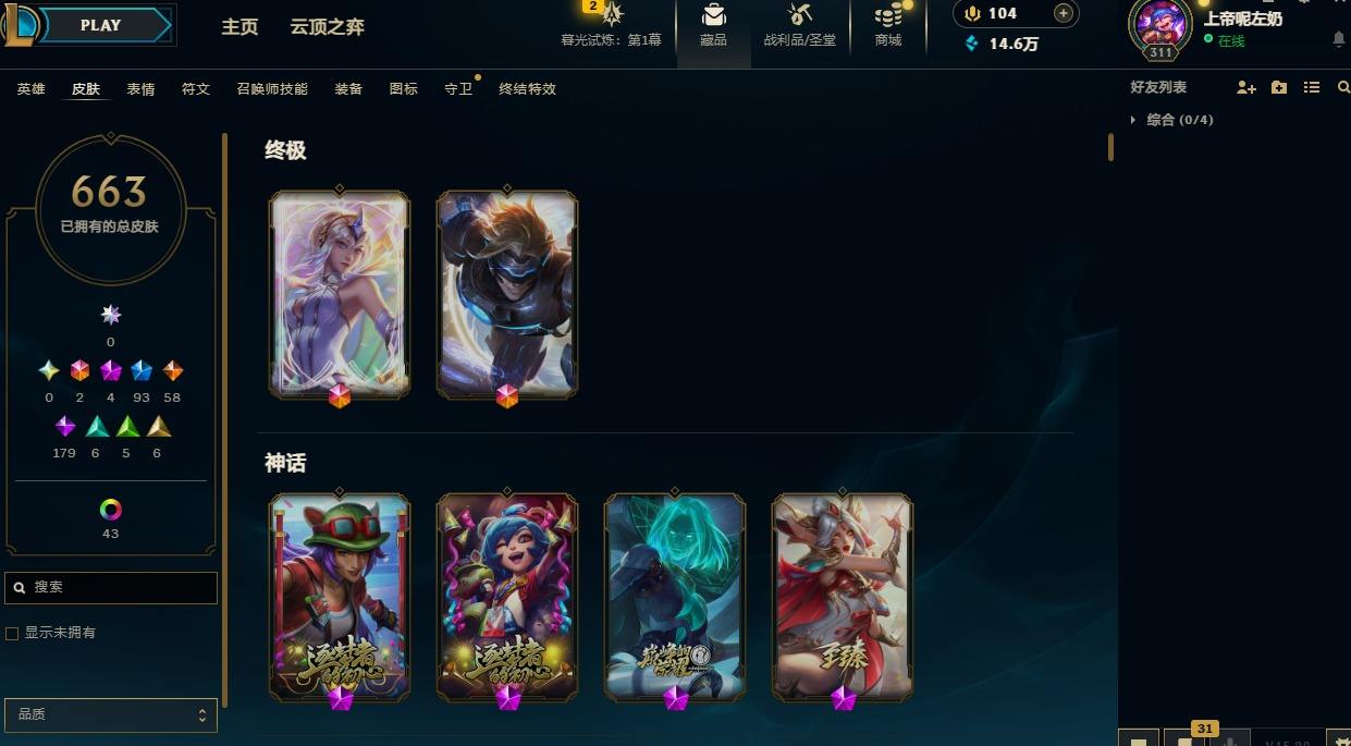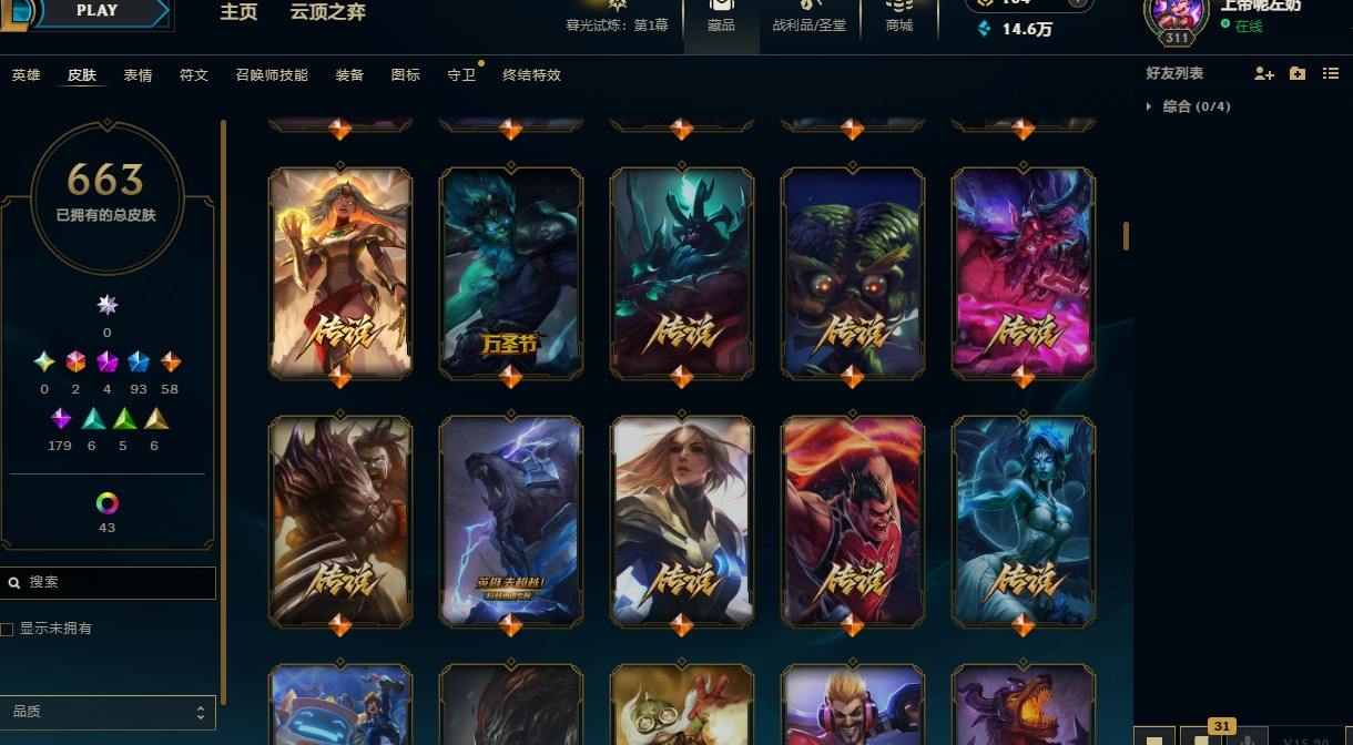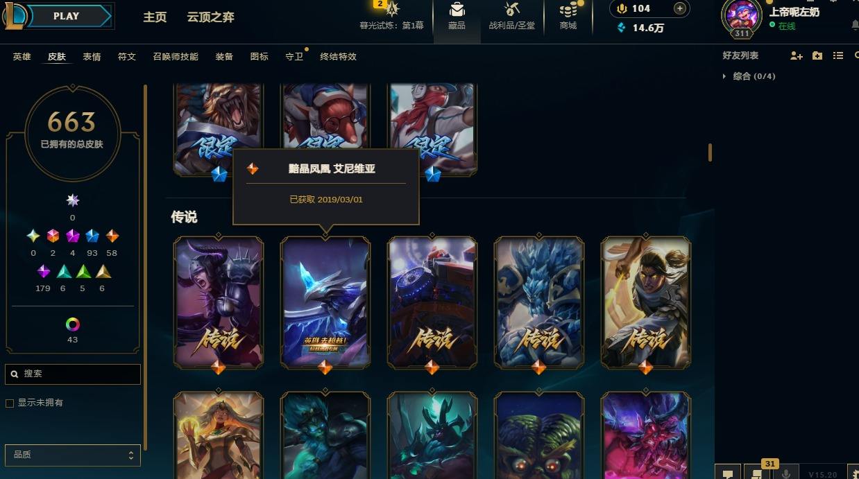 【11071772】[13190848]2终极 4神话 93限定 58传说 179史诗 663皮肤 70炫彩 171英雄 可二次 可修改实名 【至臻】:至臻 神凰行者 烈羽焰凰 霞 【限定】:穿星魔锋 赵信 【情人节限定】:觅心女王 艾希,觅心之翼 奎因,甜心宝贝 安妮,甜心宝贝 娑娜 【赛季限定皮】:胜利女神 希维尔,胜利之树 茂凯 【冠军限定系列】:S13 T1 李青,S1FNC 迦娜,S
