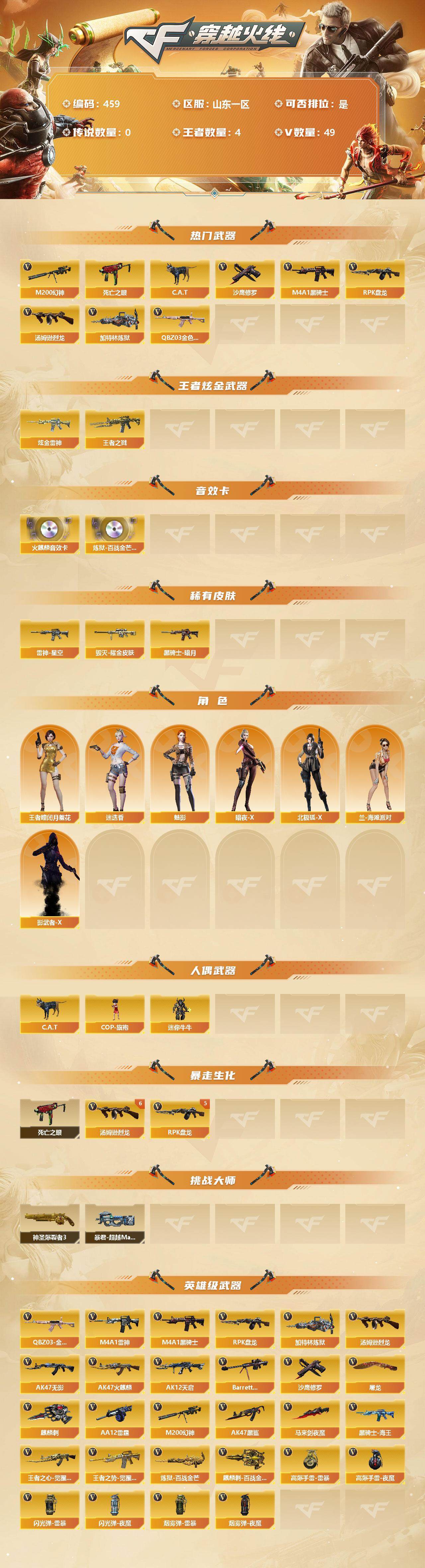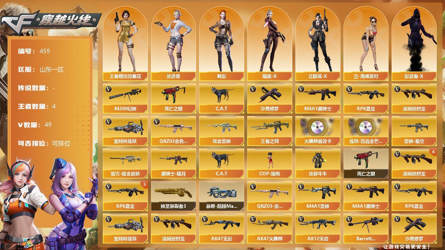【11072698】【11072698】[13195791]山东一区-49V-4王者-1炫金【热门武器】:QBZ03-金色蔷薇,M200-幻神,死亡之眼,C.