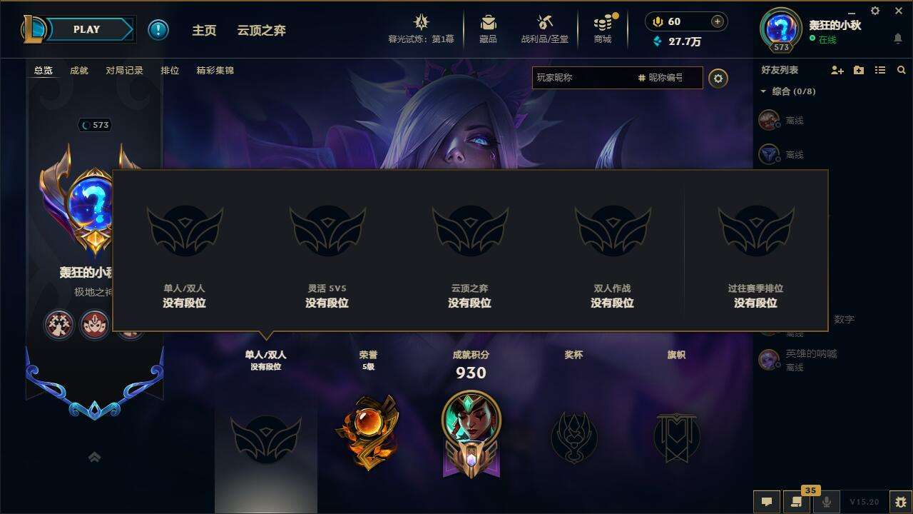 游戏区服:英雄联盟 / 电信 / 暗影岛