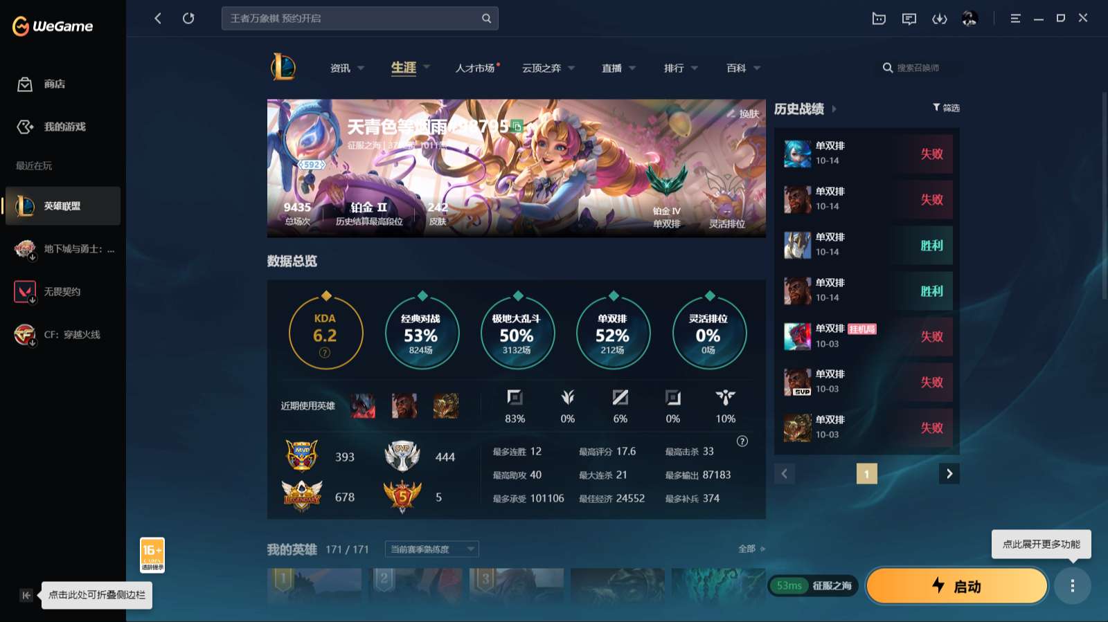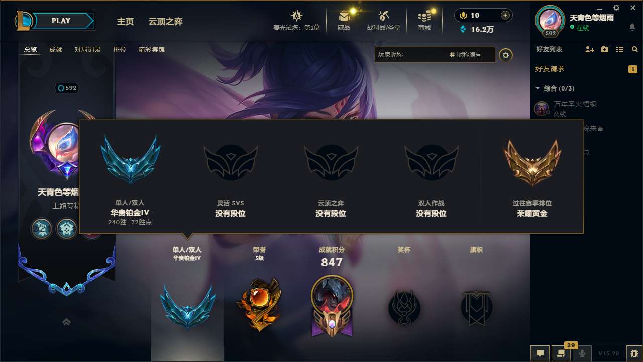 游戏区服:英雄联盟 / 电信 / 征服之海