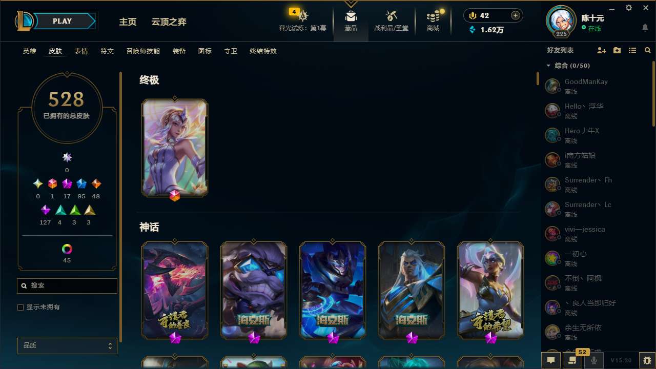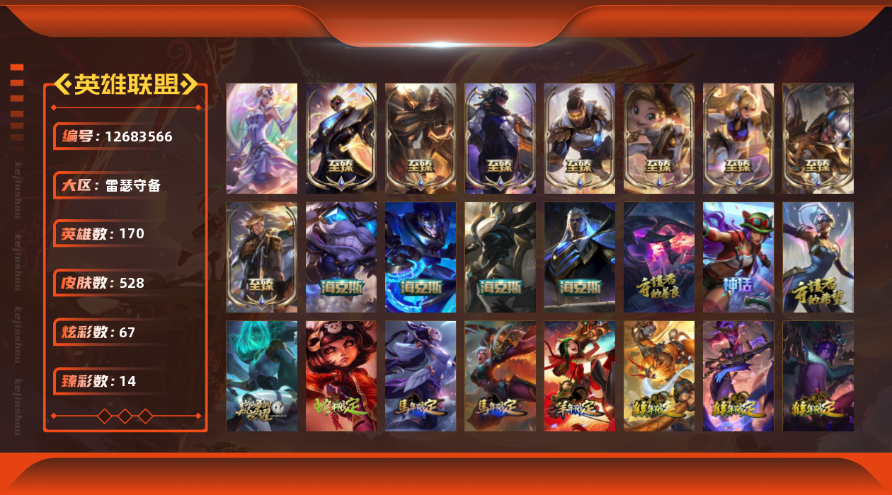 【11086553】[12683566]t28317 皇冠账号【雷瑟守备】原皮龙瞎 528皮肤 67炫彩 14臻彩 17神话/95限定/48传说/170英雄 账号等级:225【重要头像】卡特琳娜的匕首 神龙尊者艾希炫彩 EDG厄斐琉斯 EDG佛耶戈 EDG格雷福斯 EDG悠米 EDG佐伊 女帝卡特琳娜炫彩 可爱悠米 烈焰美人薇恩 战斗学院伊泽瑞尔神话炫彩 真实伤害阿卡丽