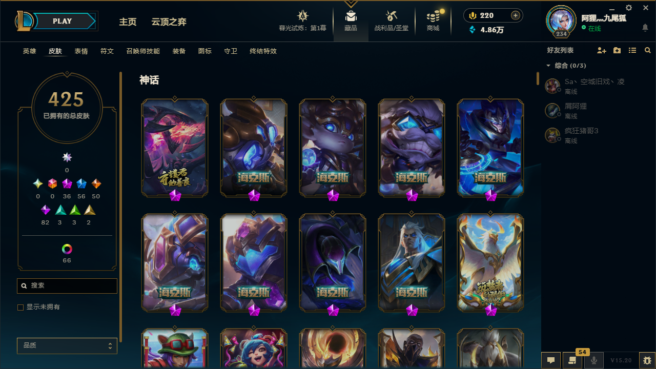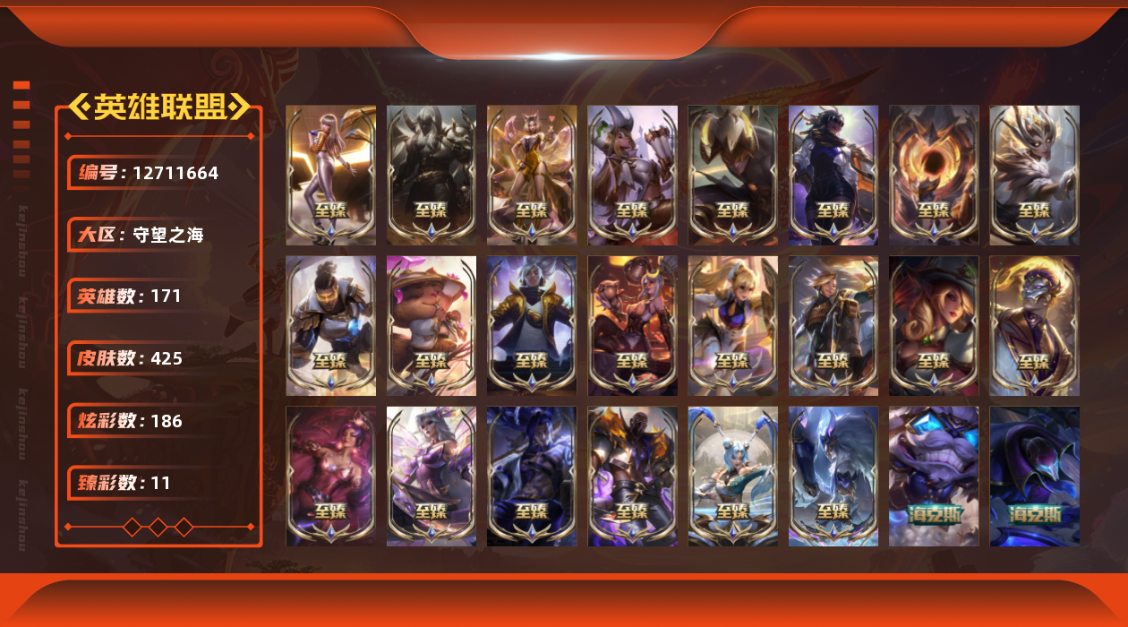 【11086678】[12711664]t28358【守望之海】425皮肤 186炫彩 11臻彩 36神话/56限定/50传说/171英雄 账号等级:234 云顶神话:4【重要头像】云顶战斗学院伊泽瑞尔 云顶古琴娑娜 觅心游侠卢锡安 雪花 两仪无极 春晖神女拉克丝 我麦是开的么 救生圈 星守金克丝炫彩 灵魂莲华莉莉娅 幼犬内瑟斯 此志无双羽饰骑士 不错哦 至臻剪纸仙灵希