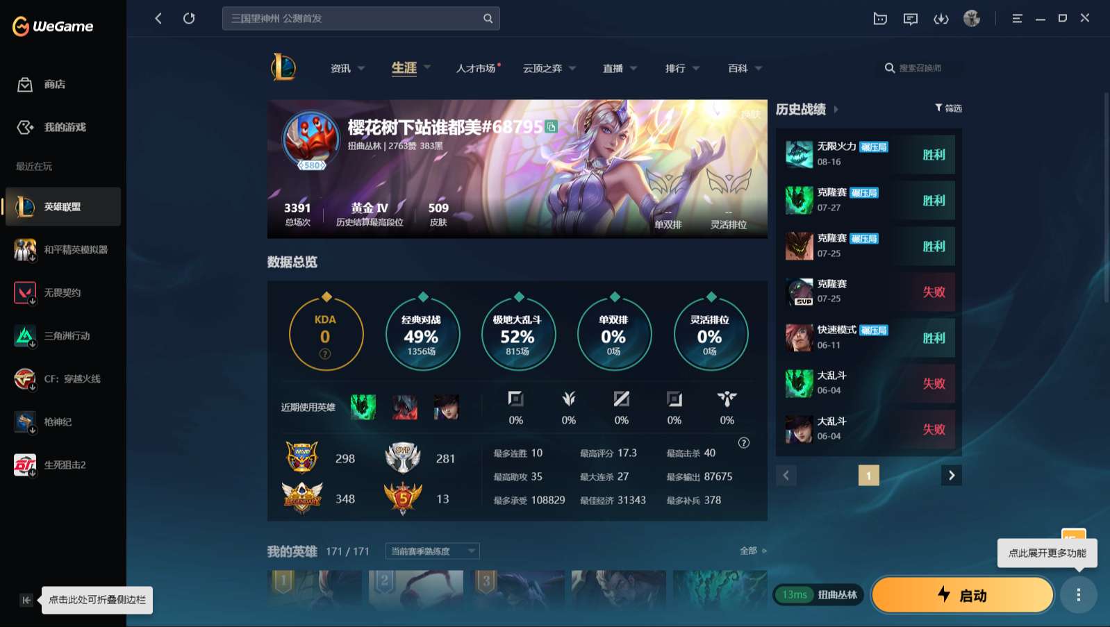 游戏区服:英雄联盟 / 网通 / 扭曲丛林