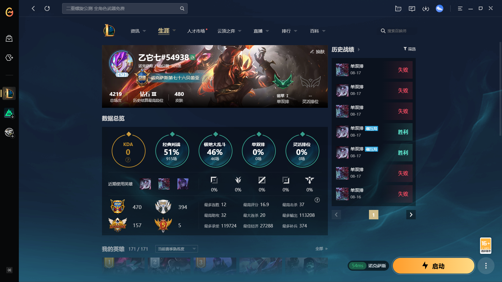游戏区服:英雄联盟 / 电信 / 诺克萨斯