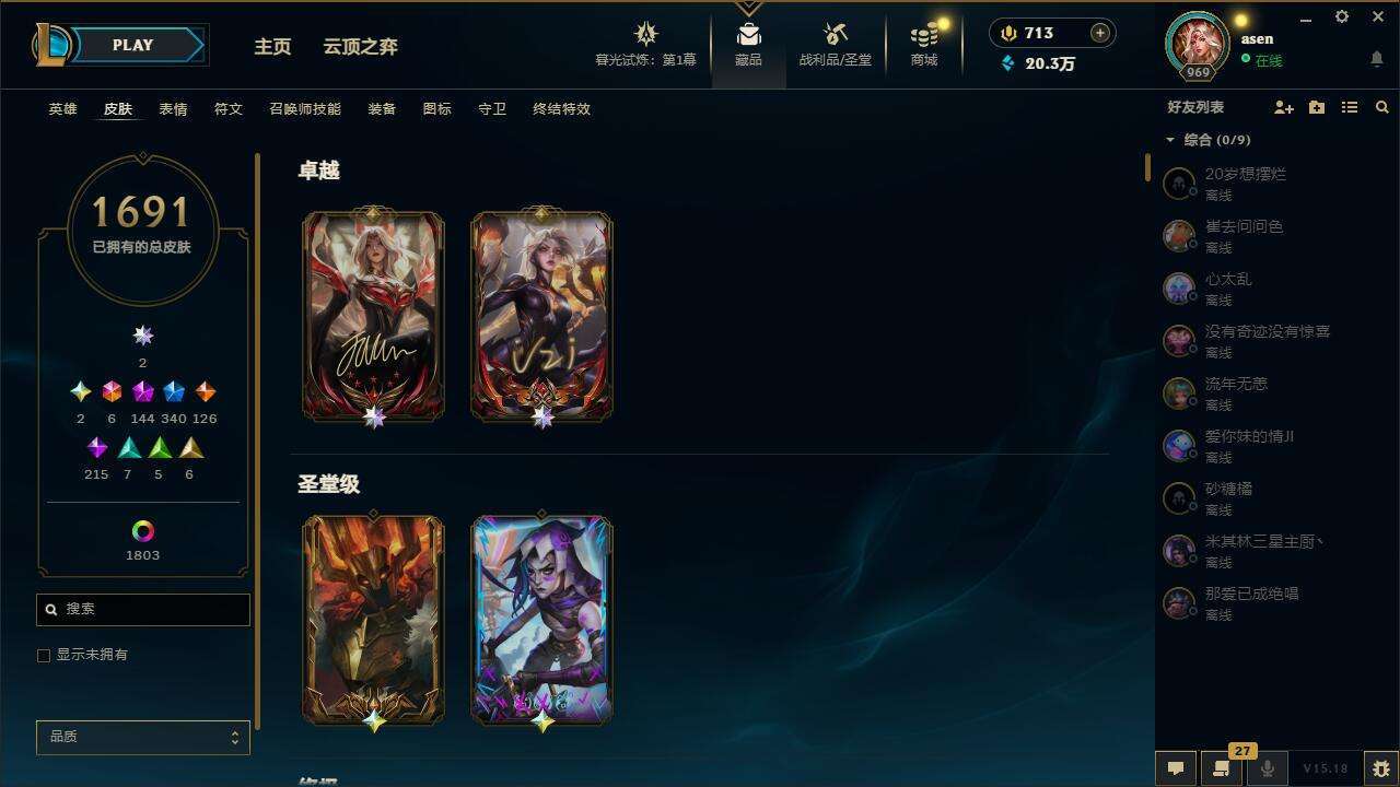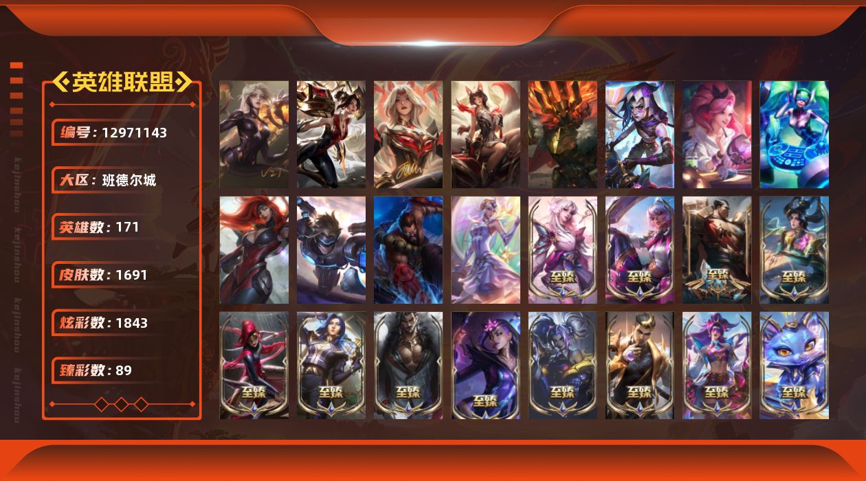 【11087587】[12971143]t26781【班德尔城】签名版联盟不朽卡莎 联盟不朽阿狸签名版 萨恩乌祖尔莫德凯撒 双城之战2破碎者金克丝 绿龙瞎 1691皮肤 1843炫彩 89臻彩 144神话/340限定/126传说/171英雄 账号等级:969 云顶神话:11 单双排段位:铂金【重要头像】燃烧花 猪妹手办 星守阿狸 DJ娑娜手办 灵魂莲华莉莉娅手办 星守璐璐手办 幻灵战队女枪手办