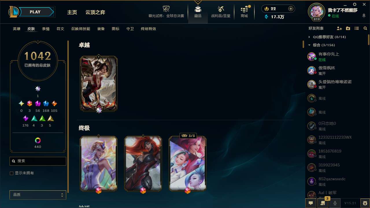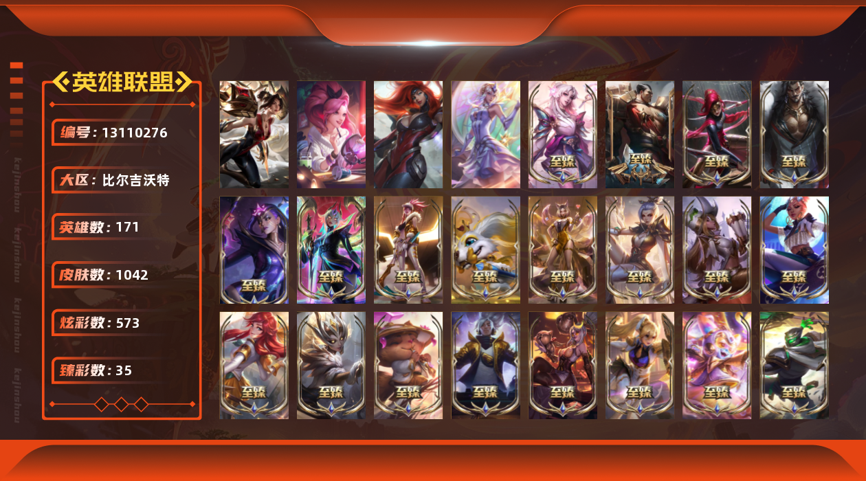 【11087680】[13110276]t29128【比尔吉沃特】殿堂传奇卡莎 粉龙瞎(无原皮)1042皮肤 573炫彩 35臻彩 56神话/168限定/105传说/171英雄 账号等级:819 云顶神话:5 单双排段位:翡翠【重要头像】星守阿狸 云顶战斗学院伊泽瑞尔 爱意绵绵 觅心游侠卢锡安 雪花 银河魔装机神安妮 大家伙 两仪无极 萨勒芬妮超级巨星 萨勒芬妮独立音乐人 春
