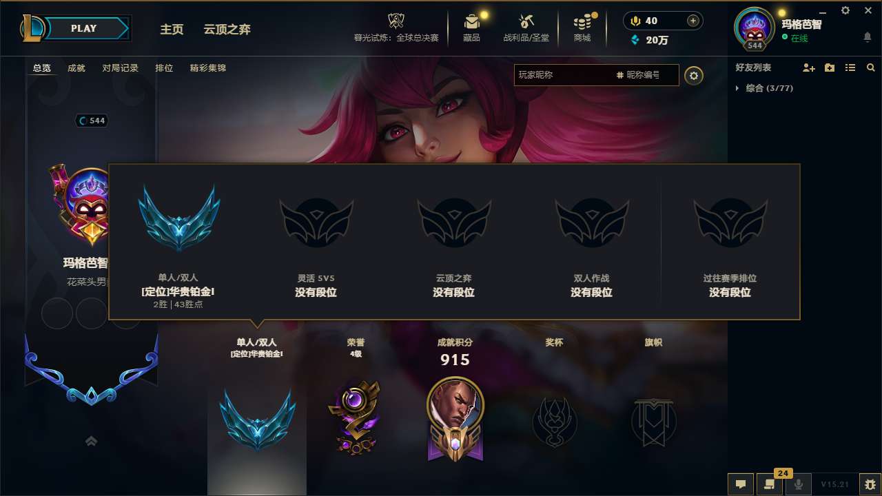 游戏区服:英雄联盟 / 网通 / 弗雷尔卓德